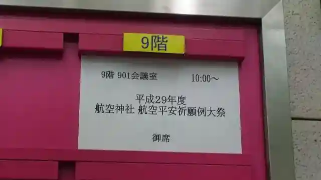 | 参拝時間 | 参拝(9階屋上):月~金曜日 9時~20時 / 土曜日 9時~17時、年末年始休み 授与所(6階 日本航空協会事務所):平日9時30~17時30分、土日祝日年末年始休み |