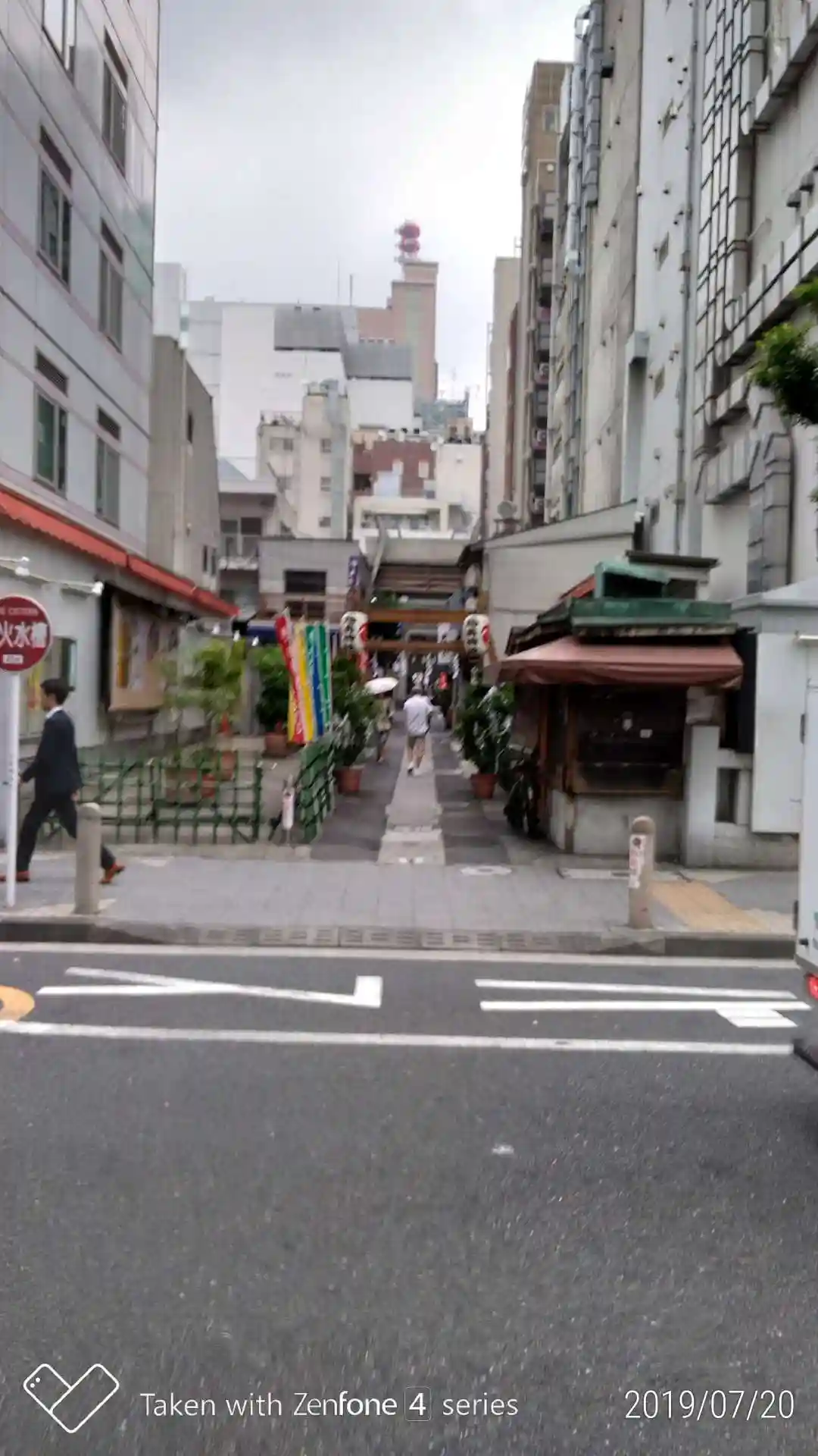 建物に挟まれたような状態の細い参道を通り抜けて一風変わったデザインの鳥居をくぐって本殿で参拝し、左奥の社務所で御朱印をいただきました。