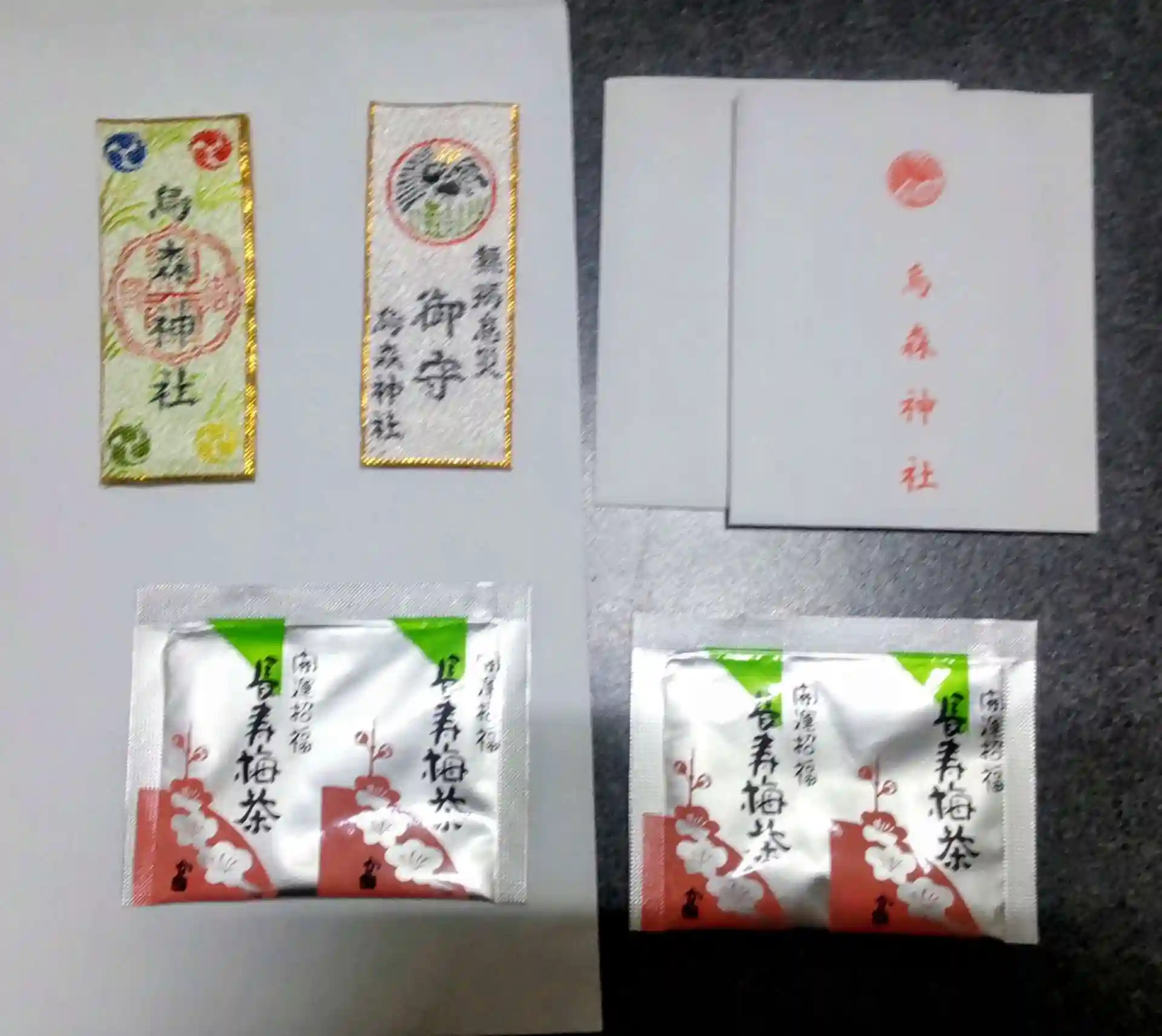 梅茶とお守り。