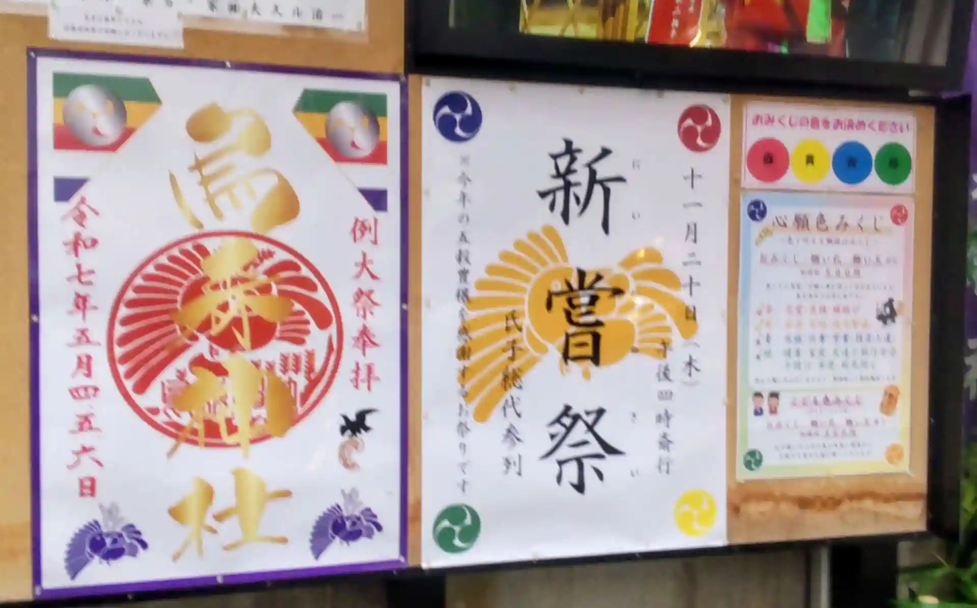 御朱印のポスターが過去のものも飾られ、お知らせさえも色鮮やか。