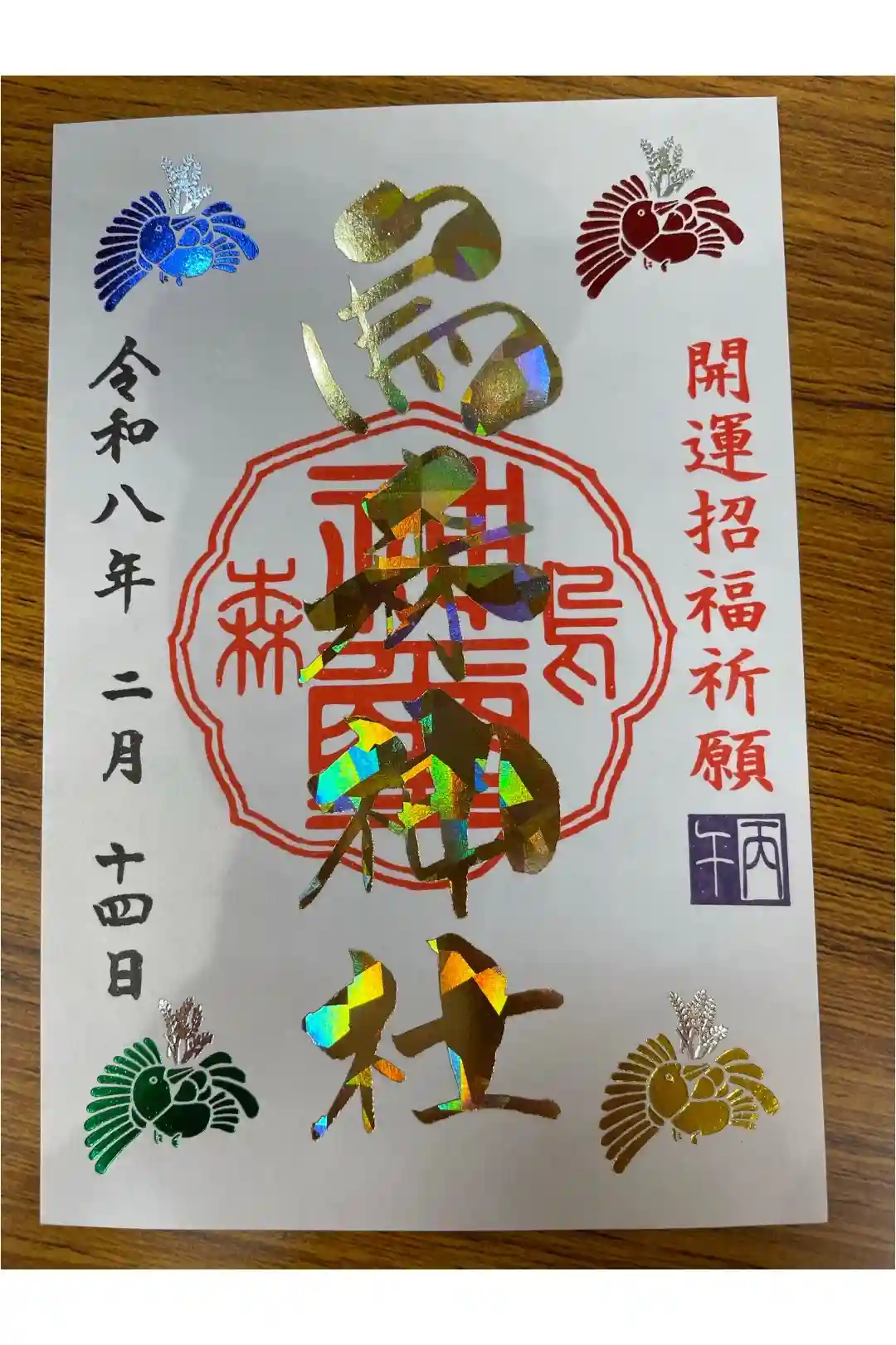 真ん中には銀色の烏森神社の文字と、茅の輪の印が押されています。