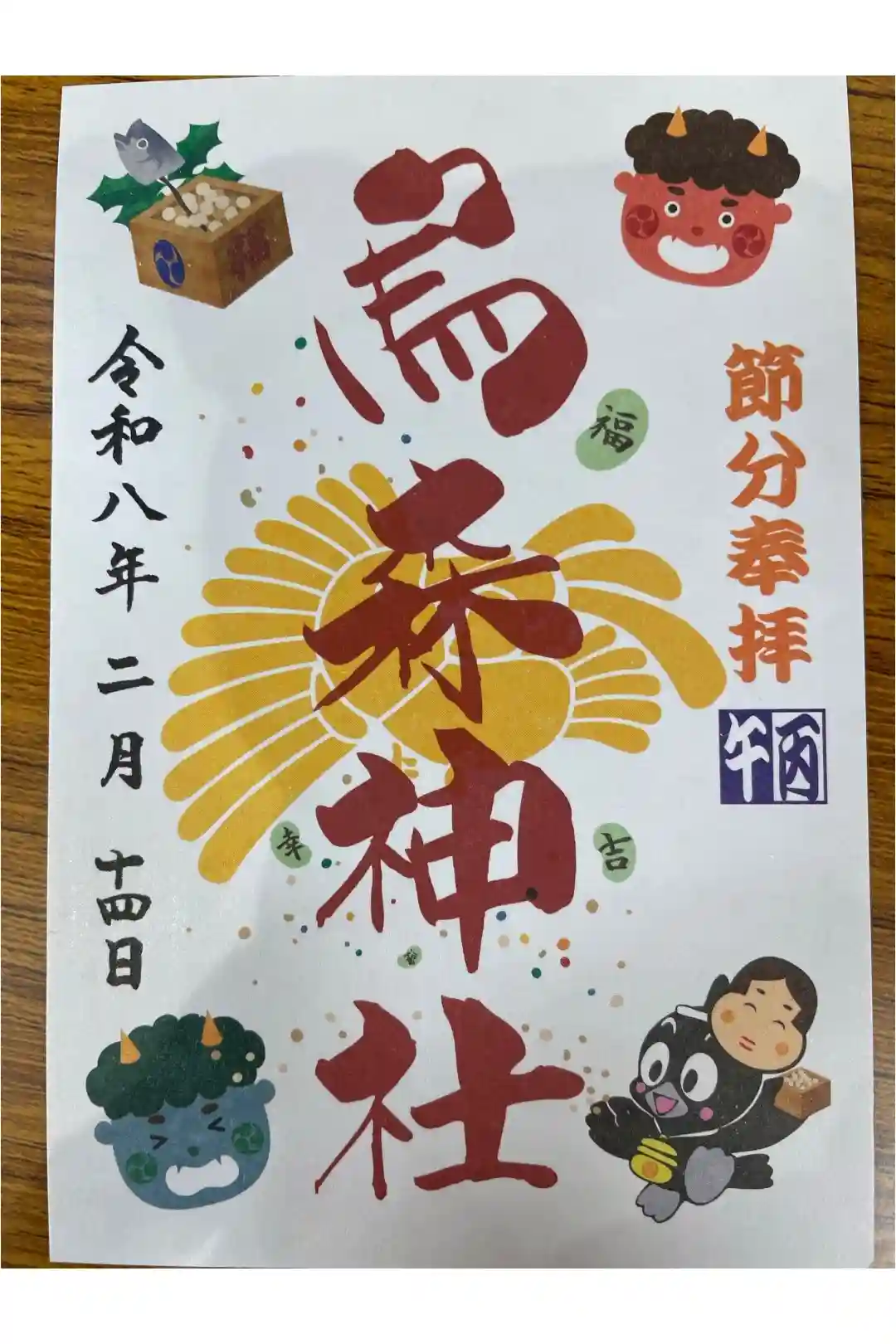 右に節分奉拝庚子の文字、真ん中に烏をあしらった社紋が入っています。