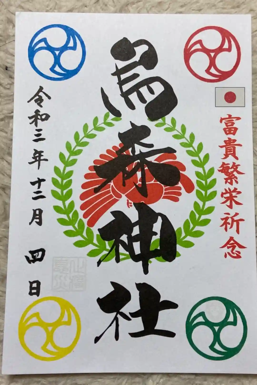 年越大祓と富貴繁栄記念の御朱印。