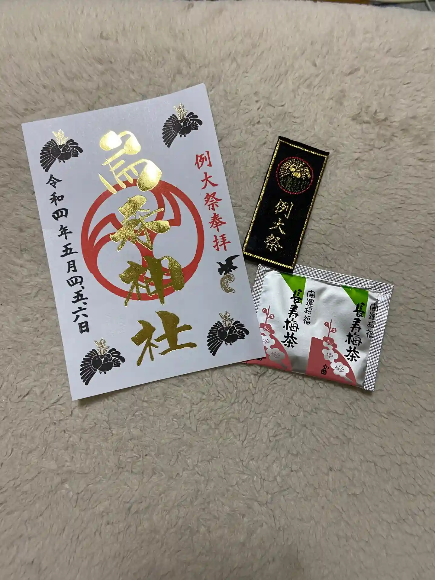 一緒にお守りと長寿梅茶をいただきました😊