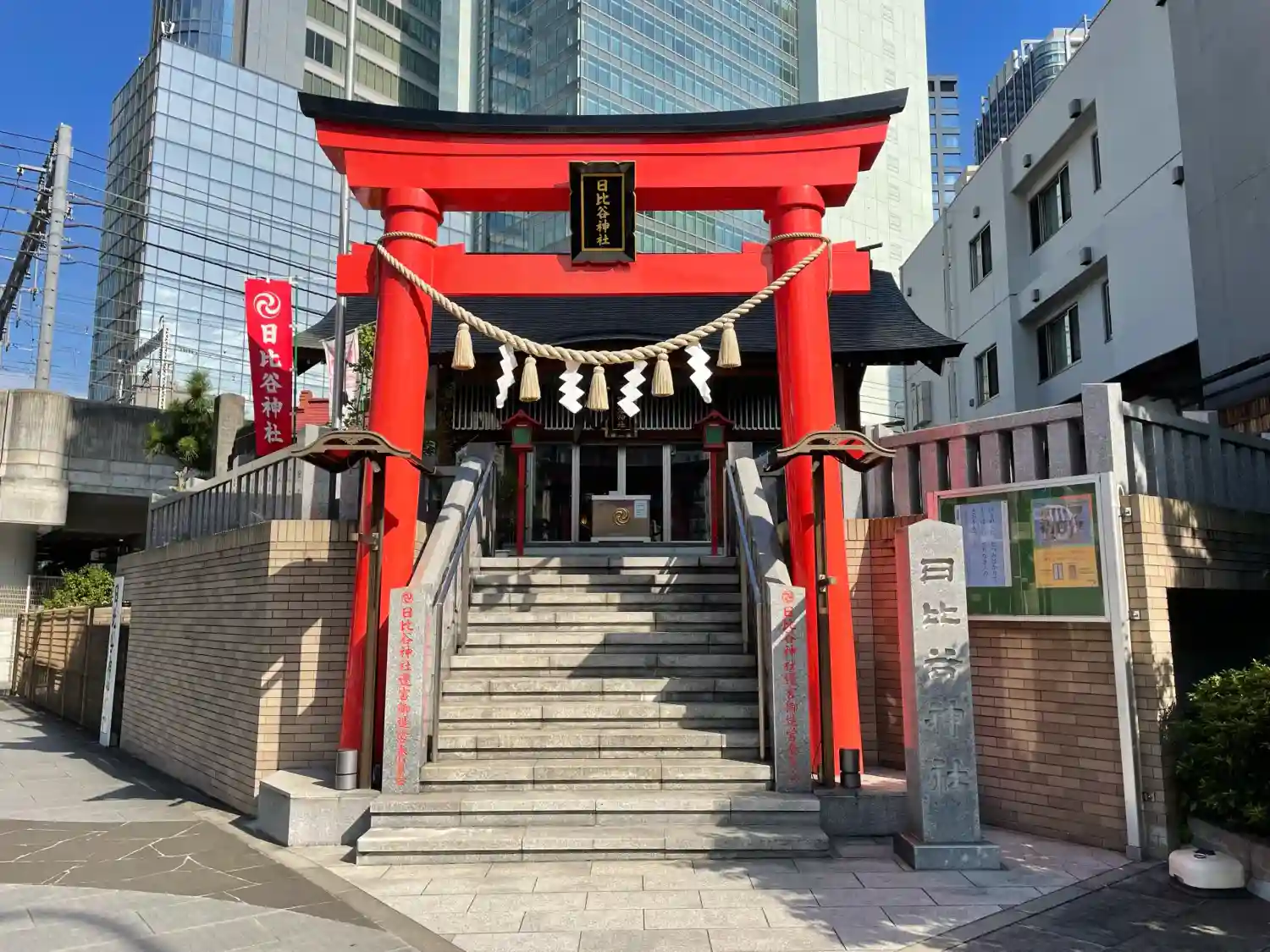 古くは現在の日比谷公園あたりに鎮座していたお稲荷様で、当時は日比谷地区の鎮守であり、現在は社号に「日比谷」の名を残す。