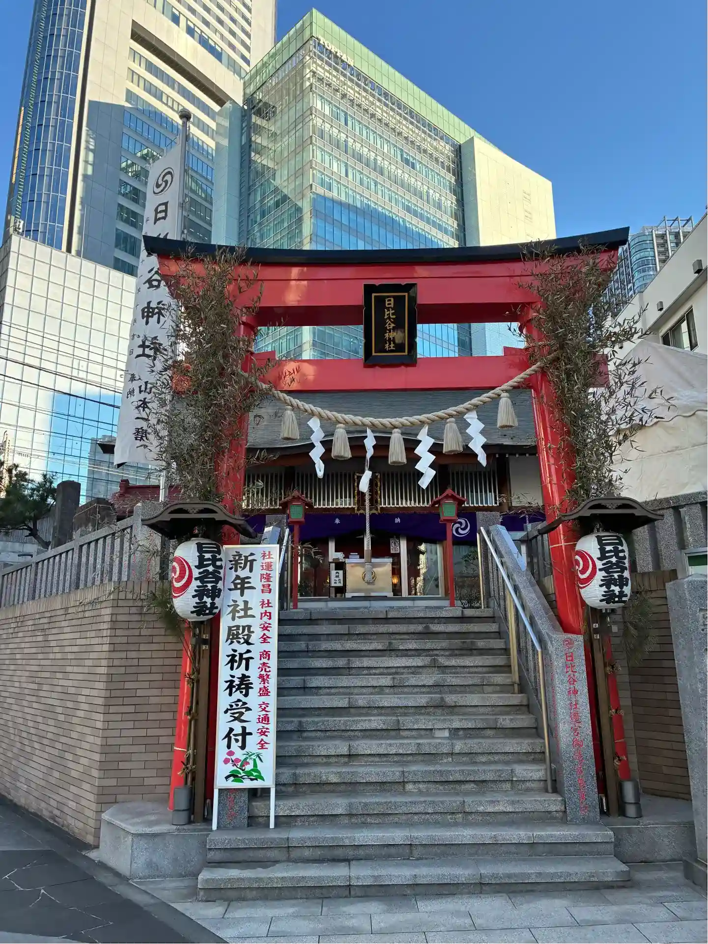 交通量が多いビル群の中にどどんっと構えてらっしゃる日比谷神社⛩