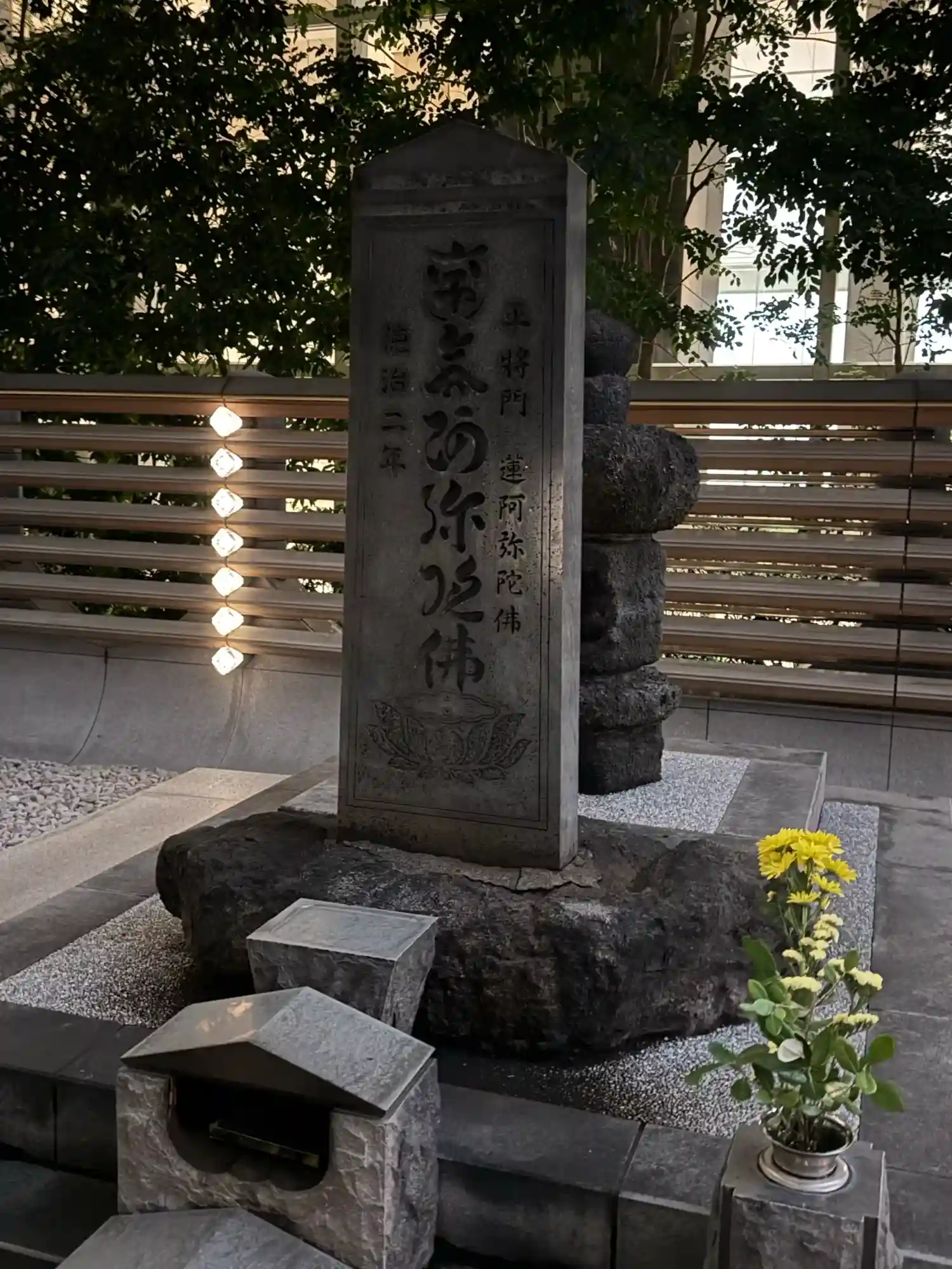 江戸時代に寺は浅草に移されますが、塚はそのまま残されたようです。板碑の南無阿弥陀佛の文字は他阿眞教上人の直筆ですが、板碑は何度か建て直されていて、その都度、日輪寺の碑から拓本が取られて、文字が写されるそうです。