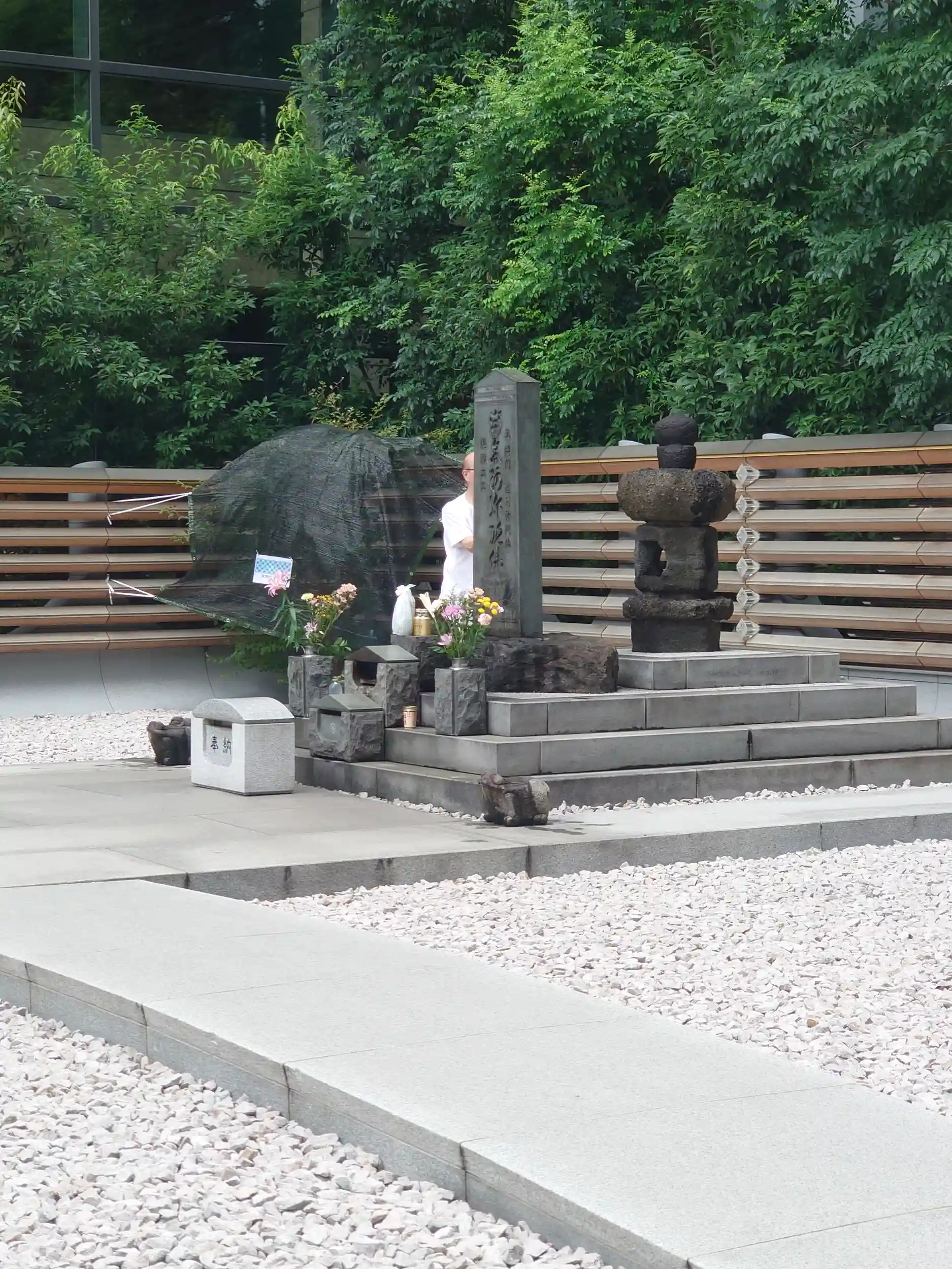 高層ビルに囲まれた一画にあり、参拝者が途切れず訪れていました。現在の様子からはとても想像できませんが、塚が築かれた当時は江戸湾の波が打ち寄せる海浜で「竜の口」と呼ばれていたそうです。