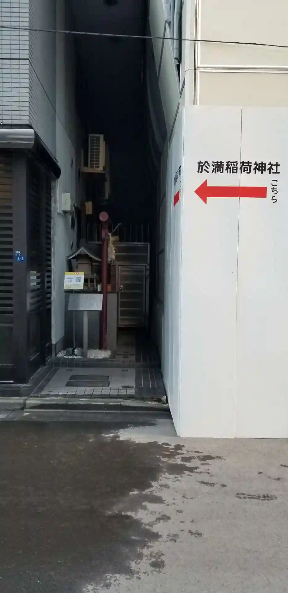 東京都中央区に鎮座する、於満稲荷神社を参拝。ビルの間にひっそりと建っている。