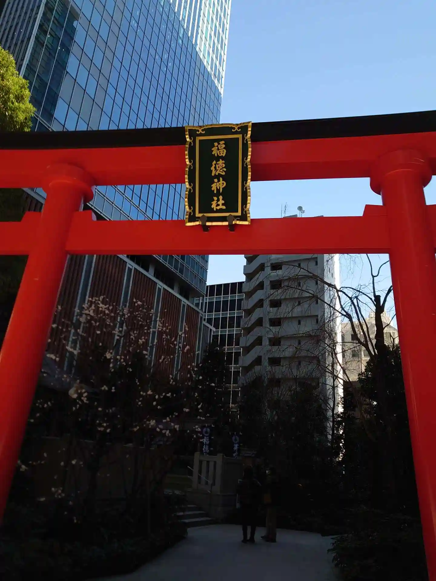 福徳神社の鳥居?赤い門が見えるので