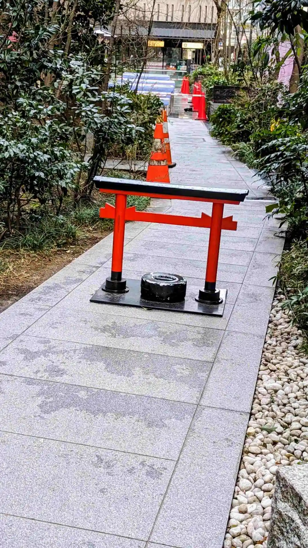 並んでいる横に脇道が工事をしているようで鳥居で通行止めしているのかな?