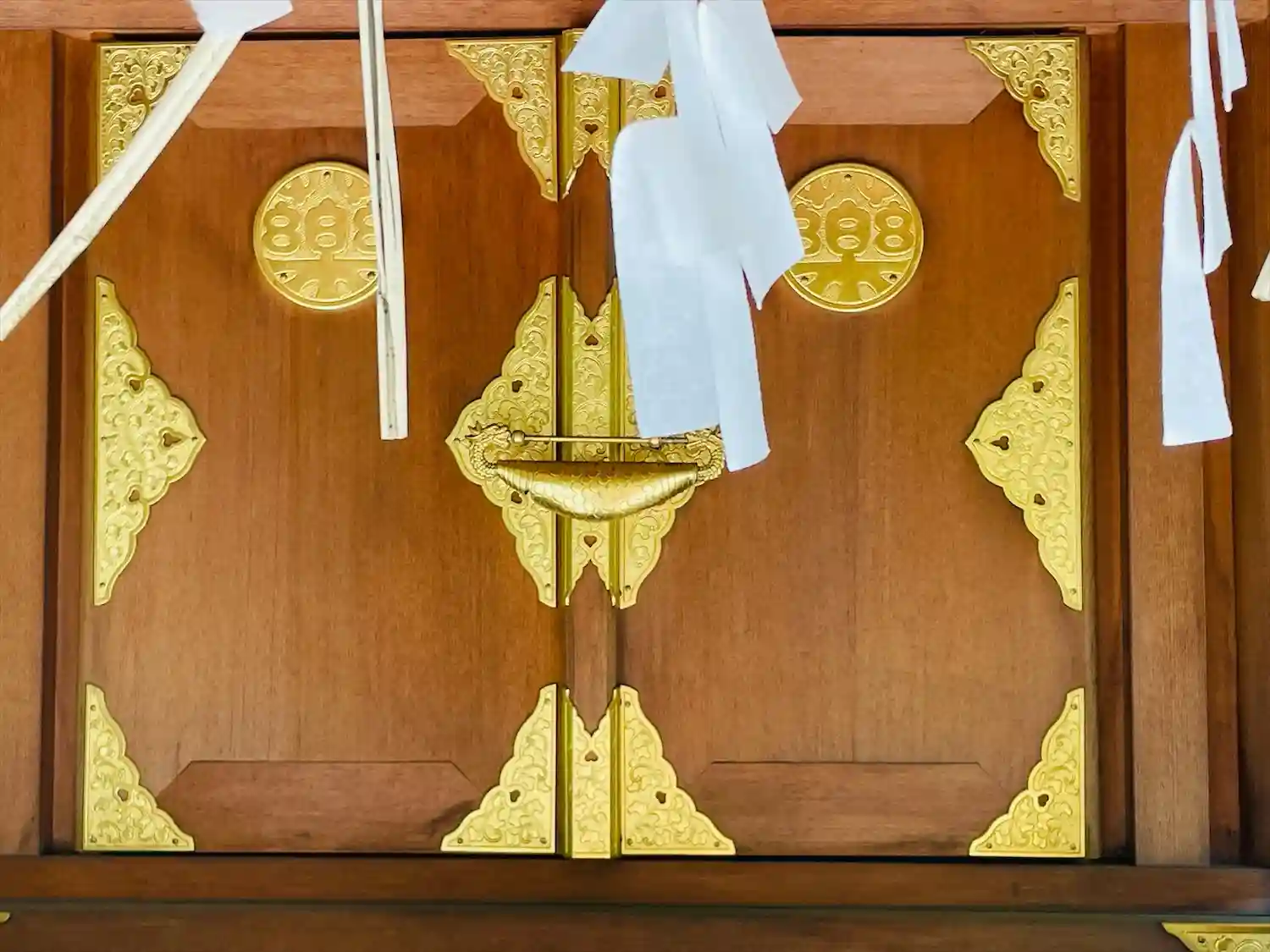 お薬の神様ということで、お社の扉に「薬」の字がある。