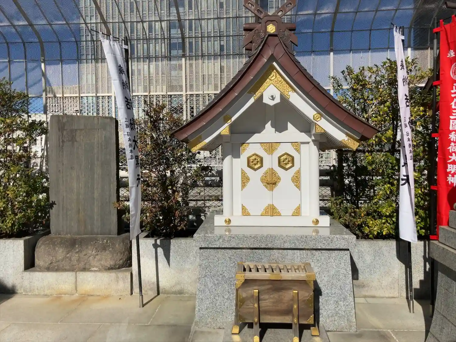 東京都中央区に鎮座する、三囲神社を参拝。日本橋三越の屋上庭園に鎮座する、整備が行き届いており、また境内には活動大黒天も鎮座する。