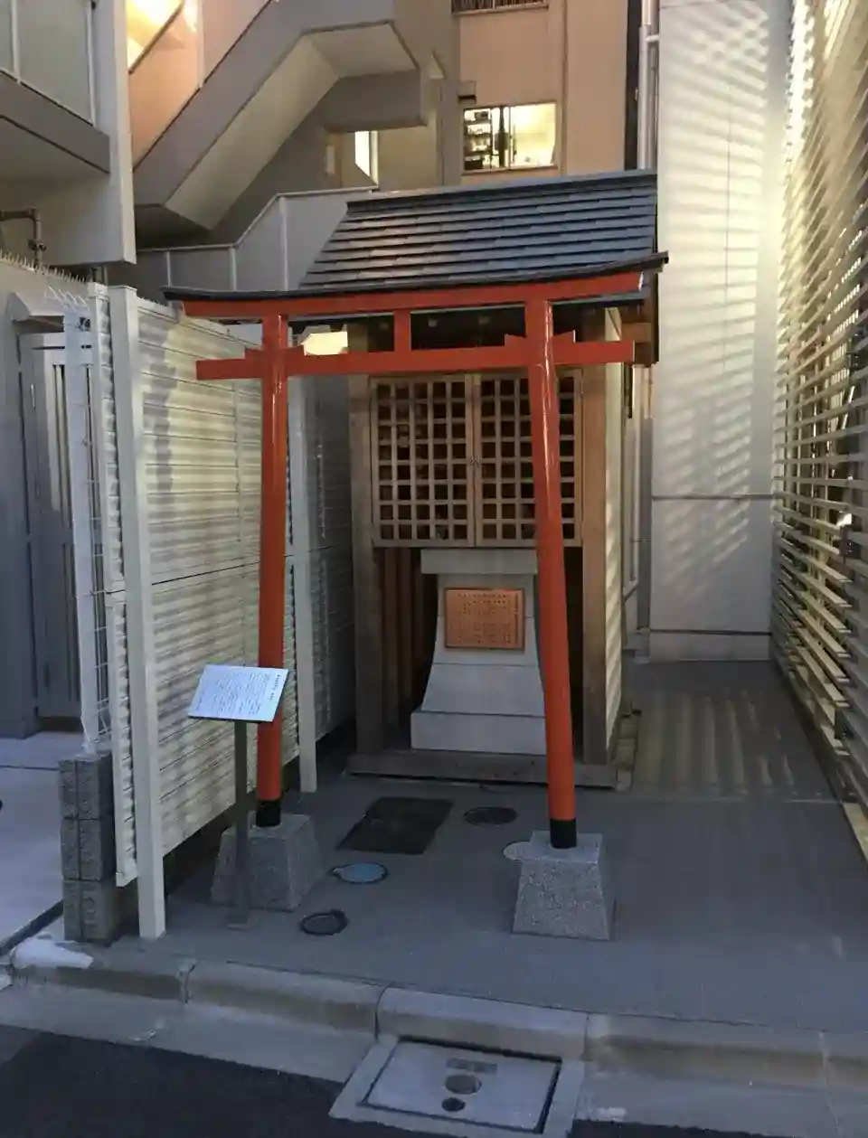 マンションとマンションのあいだに、まるで押し込まれるように建てられたその姿は、建物の隙間にひっそりと身を潜めているかのよう。まさに都心ならではの風景だと感じました。
