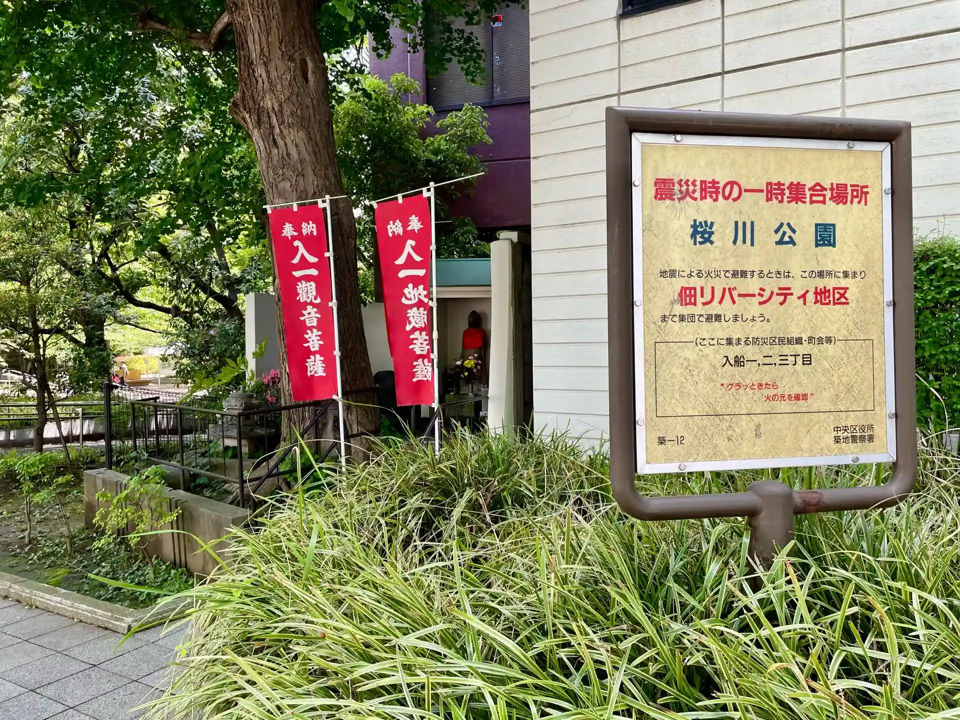 東京都中央区入船にある桜川公園の一角にある。