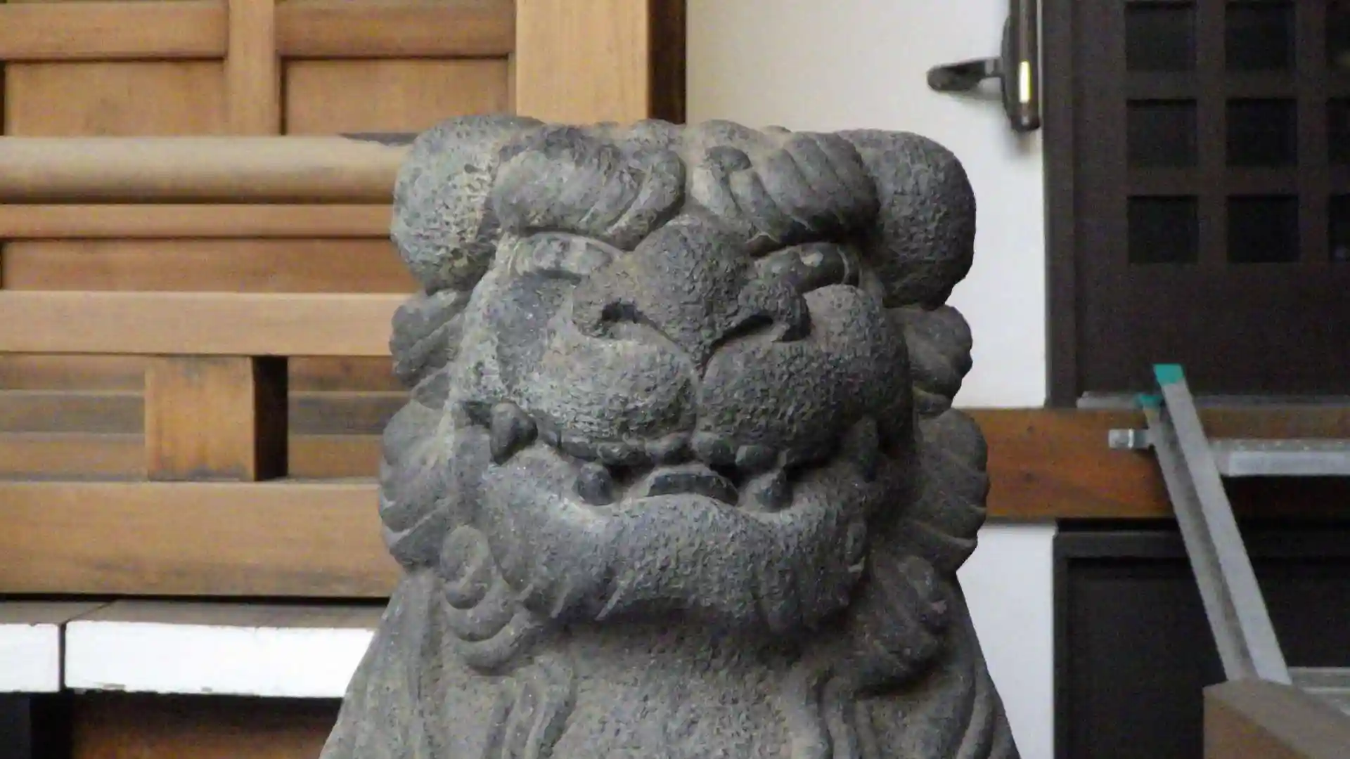 にっこり笑う狛犬さん。
