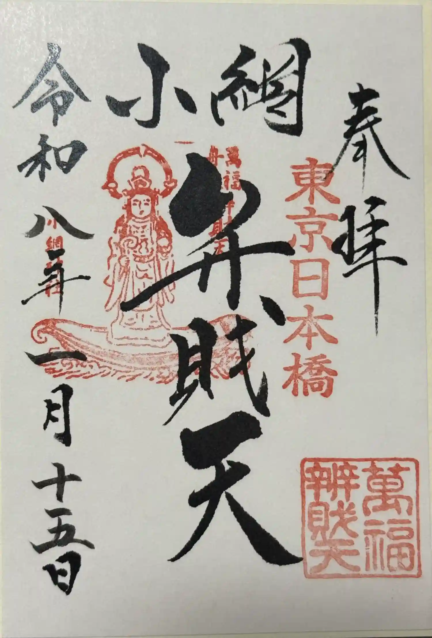 東京都中央区日本橋小網町に鎮座する神社で、創建年代等は不詳ながら、悪疫消滅鎮静を祈願するために、恵…