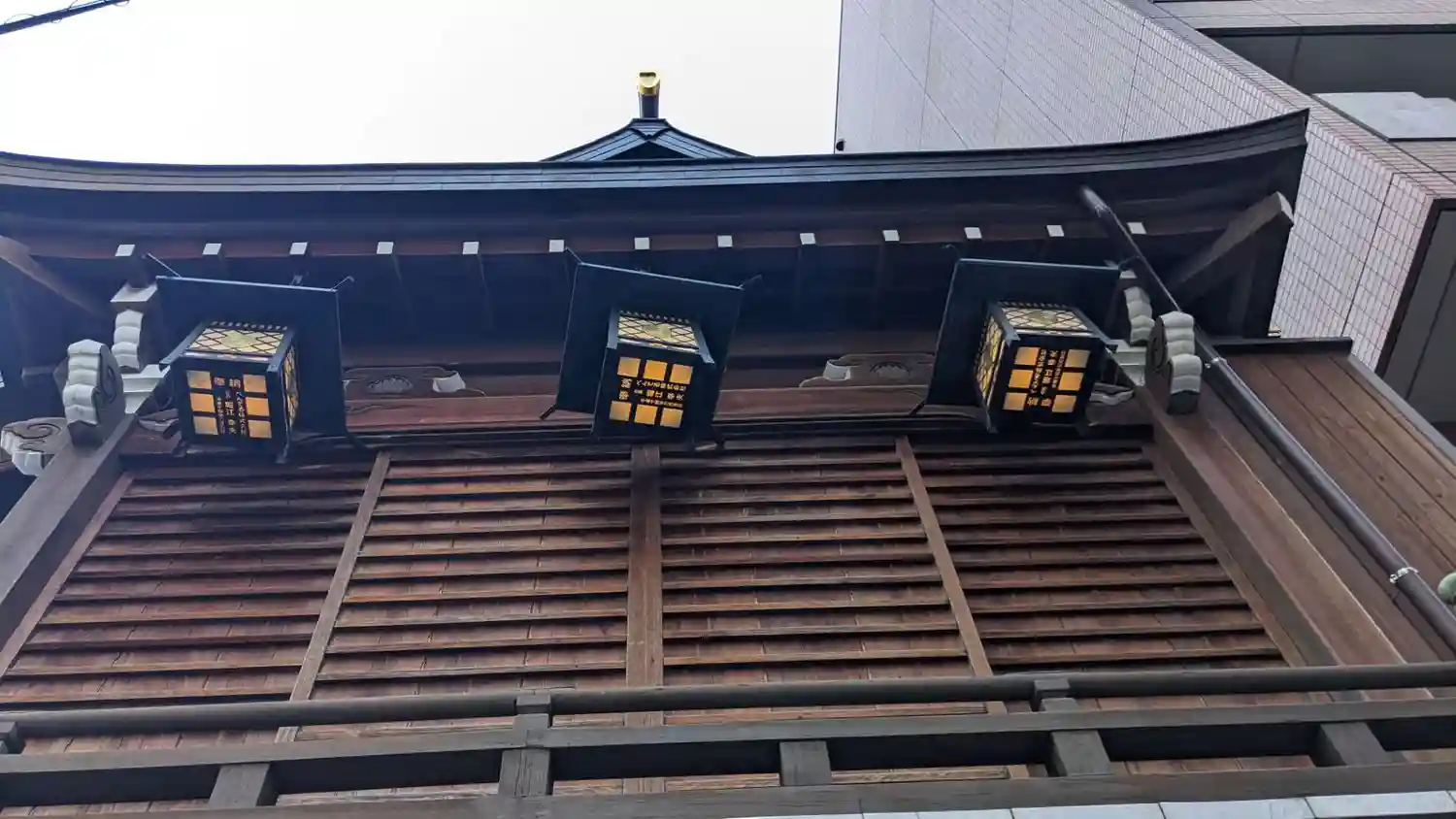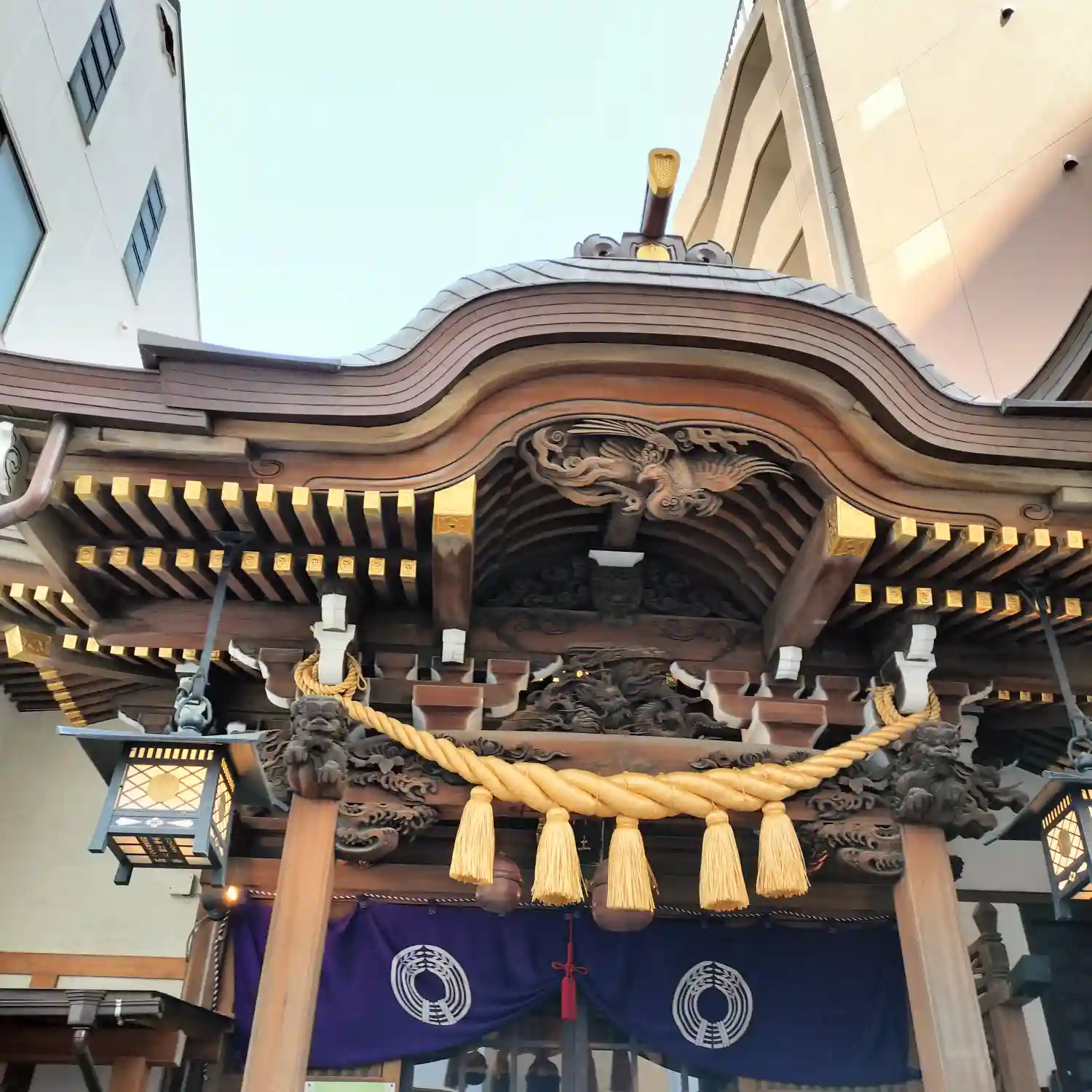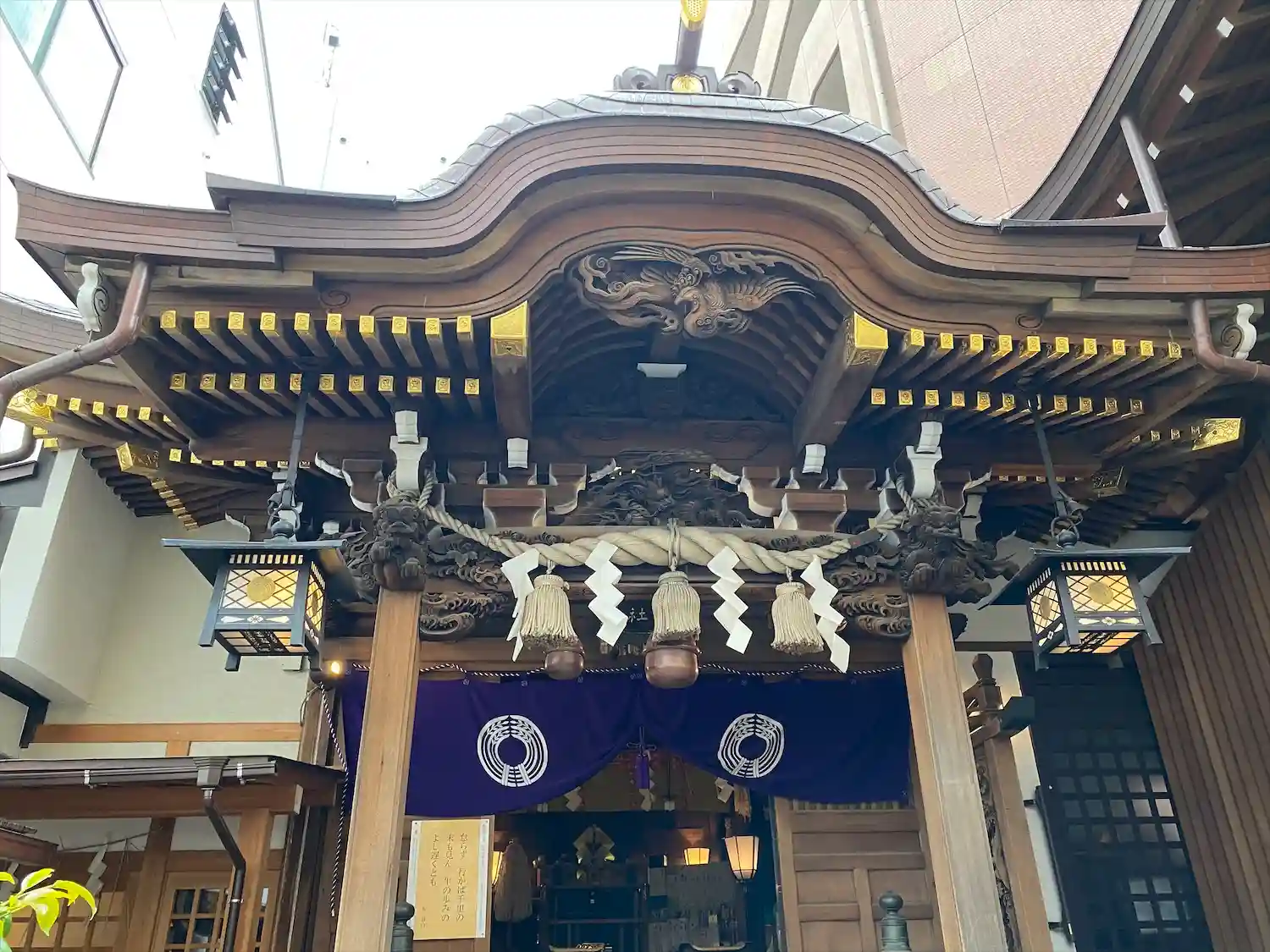 高い建物の間に囲まれた小さな神社ですが、
