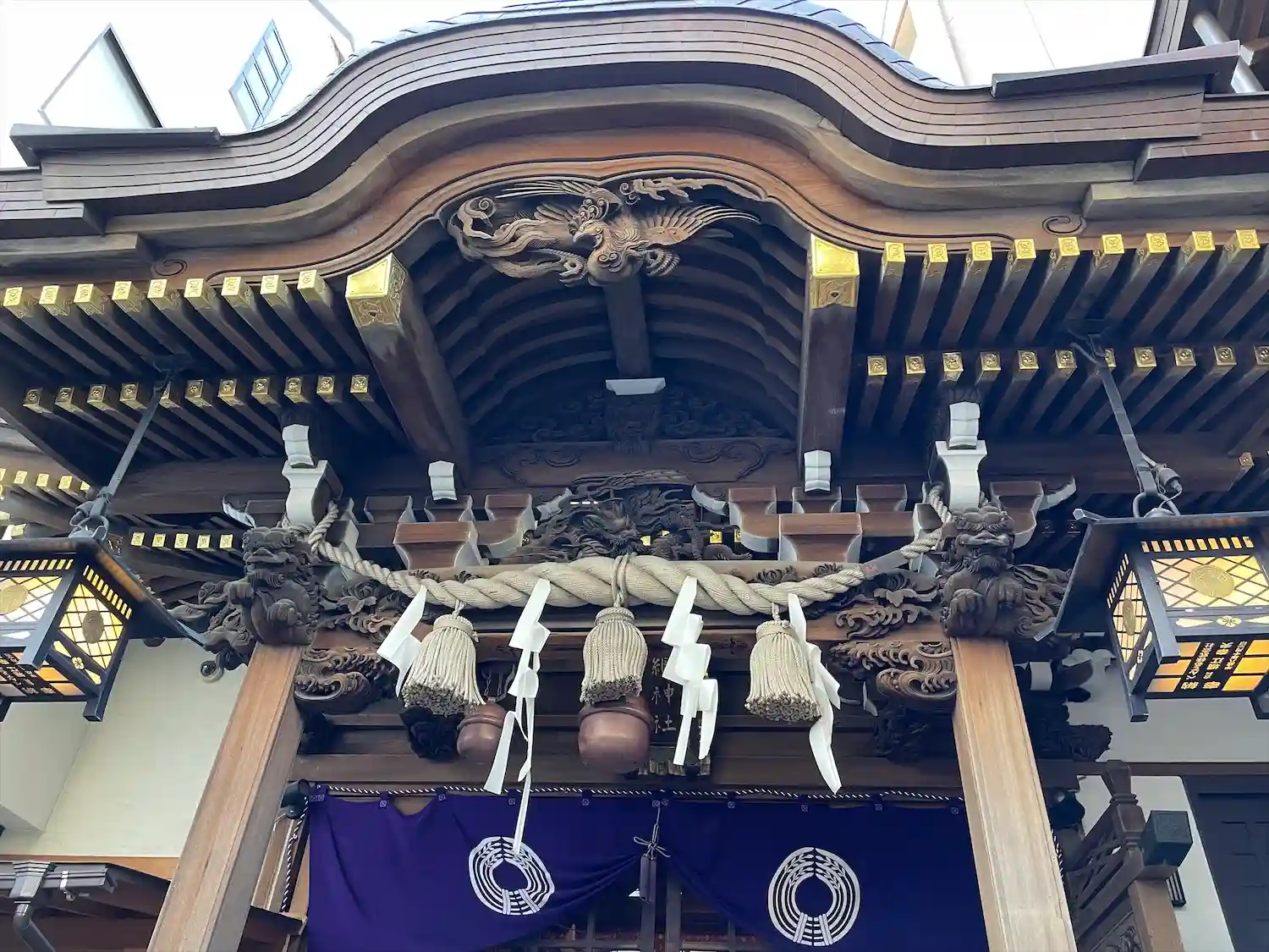 いつお参りしても多くの人でいっぱいです。神楽殿が独特な風合いです。