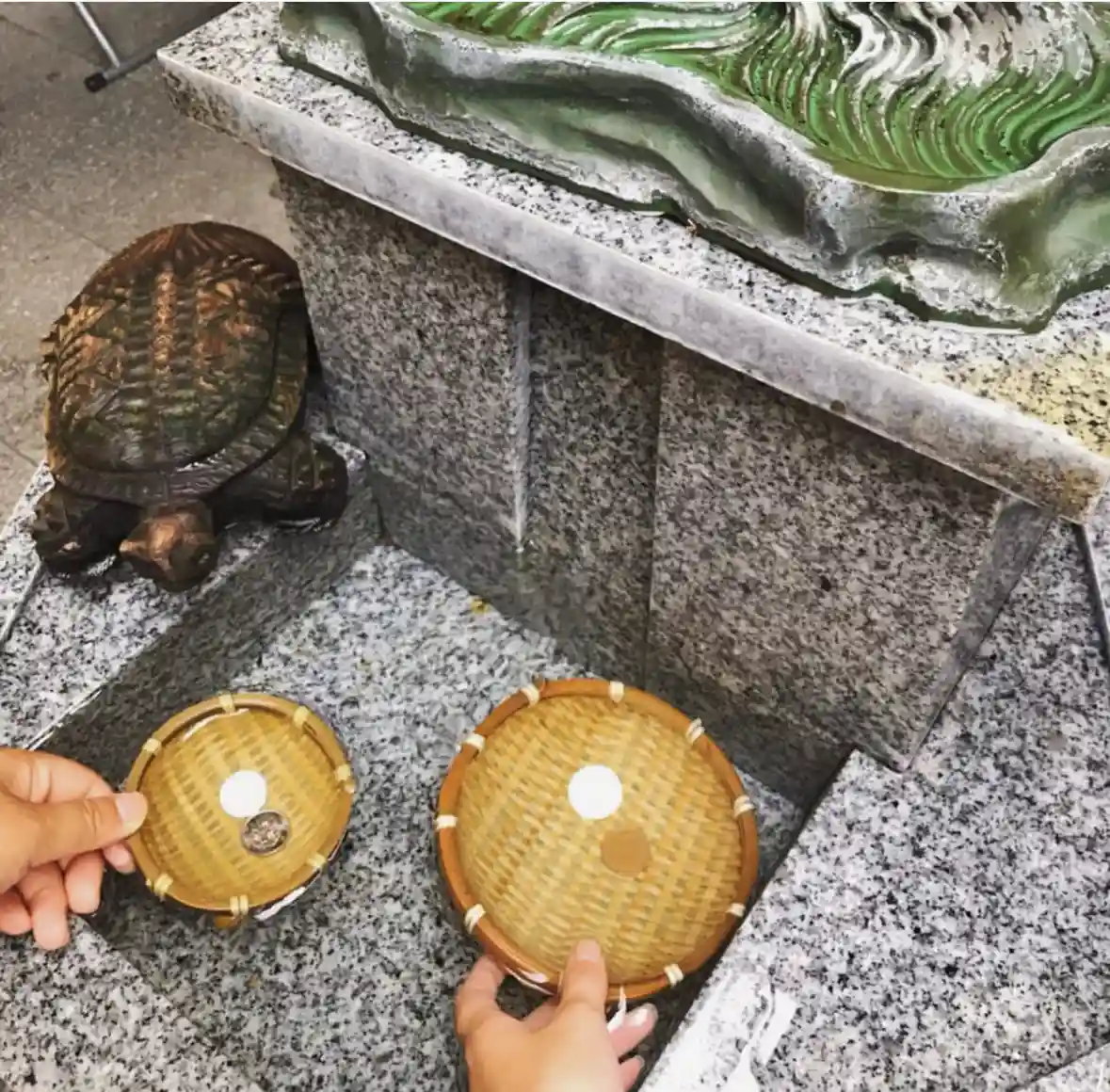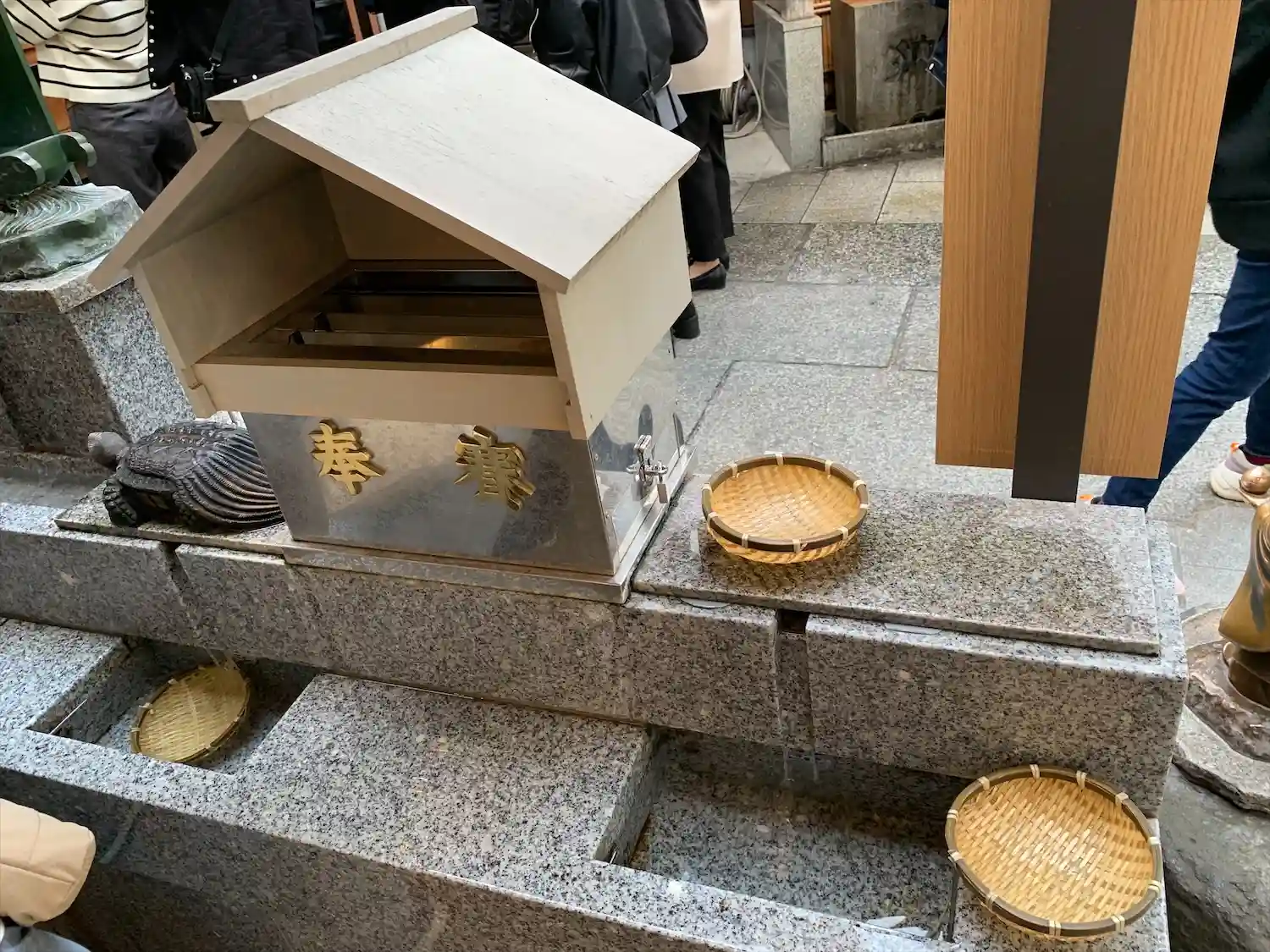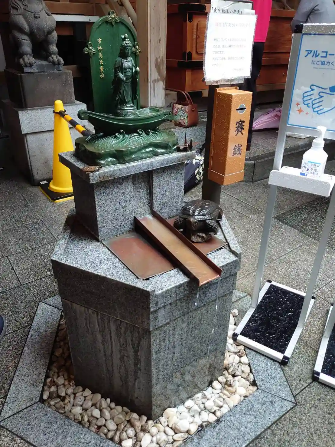 銭洗い弁天さんのザルはコロナ対策で撤去されていて、直接お金を洗う形式になっていました。