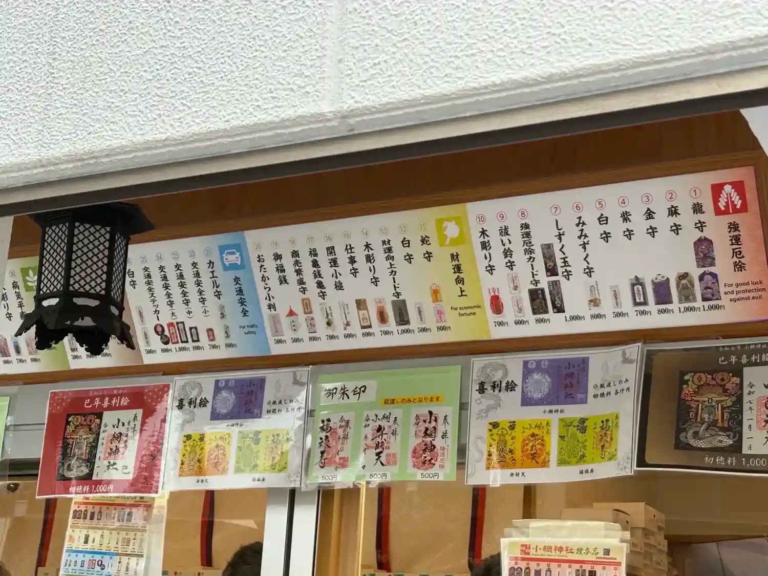 ど迫力の龍と可愛らしいみみずく、どちらも強運・厄除の御守り。まゆみくじを引いたら堂々の大吉でした。ヤッタ‼️