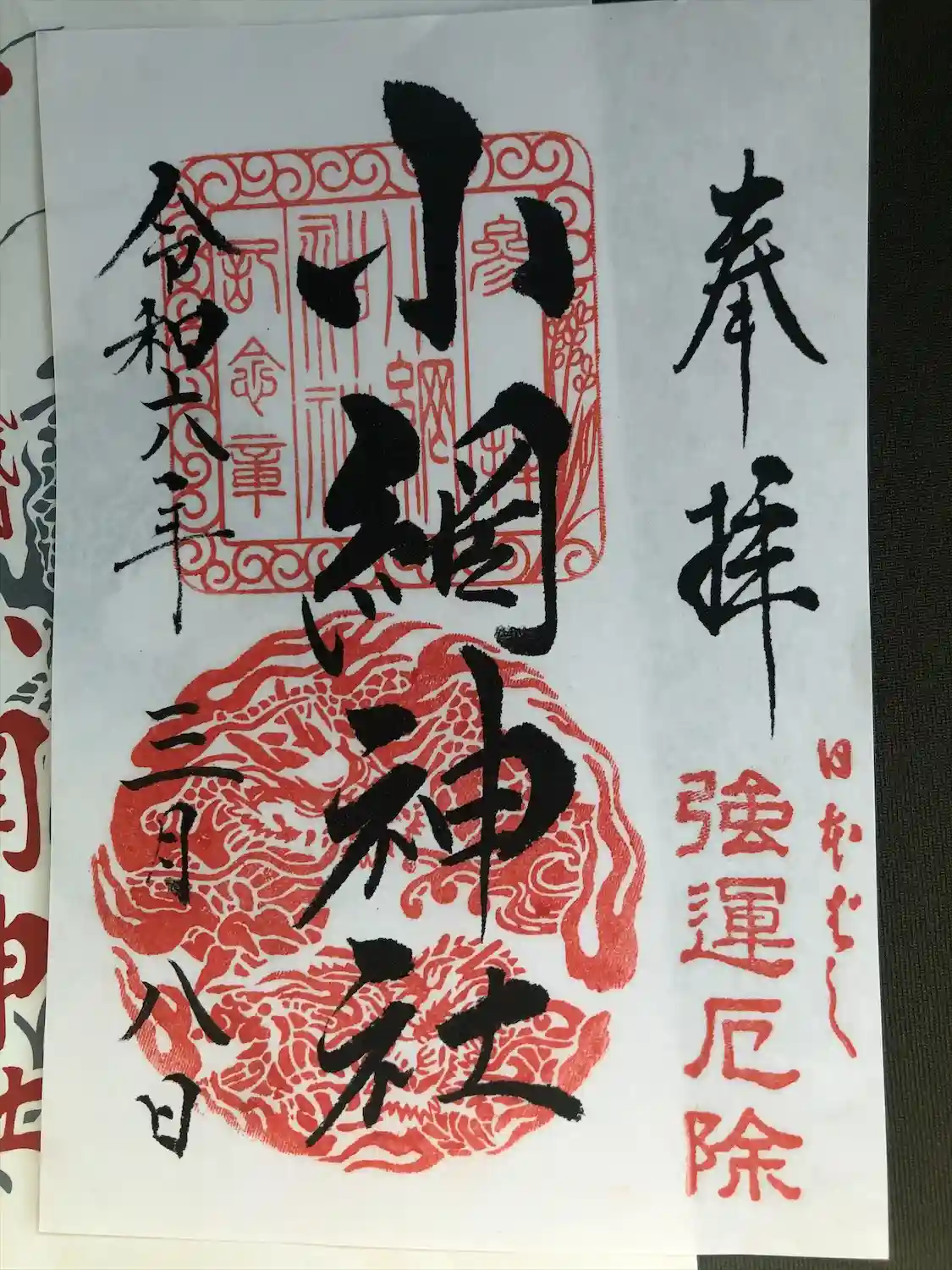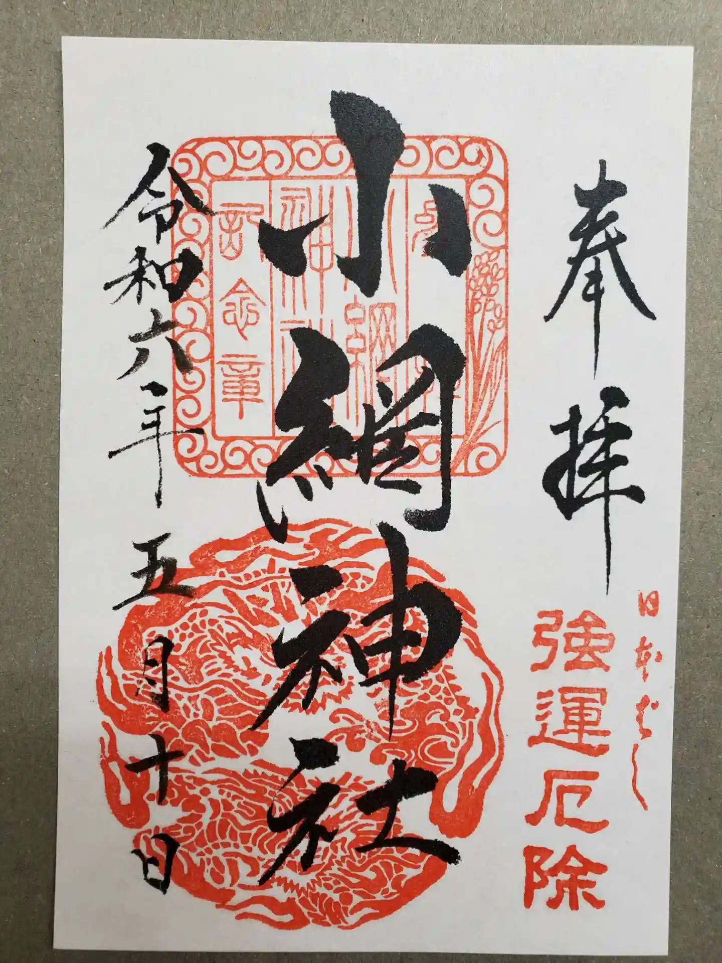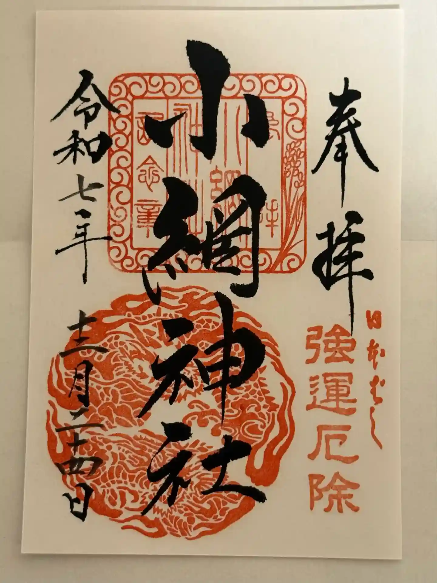 ※※小網神社は2020年1月1日から、全種類朱印が書き置きのみで、直書きは長期中止だそうです!!