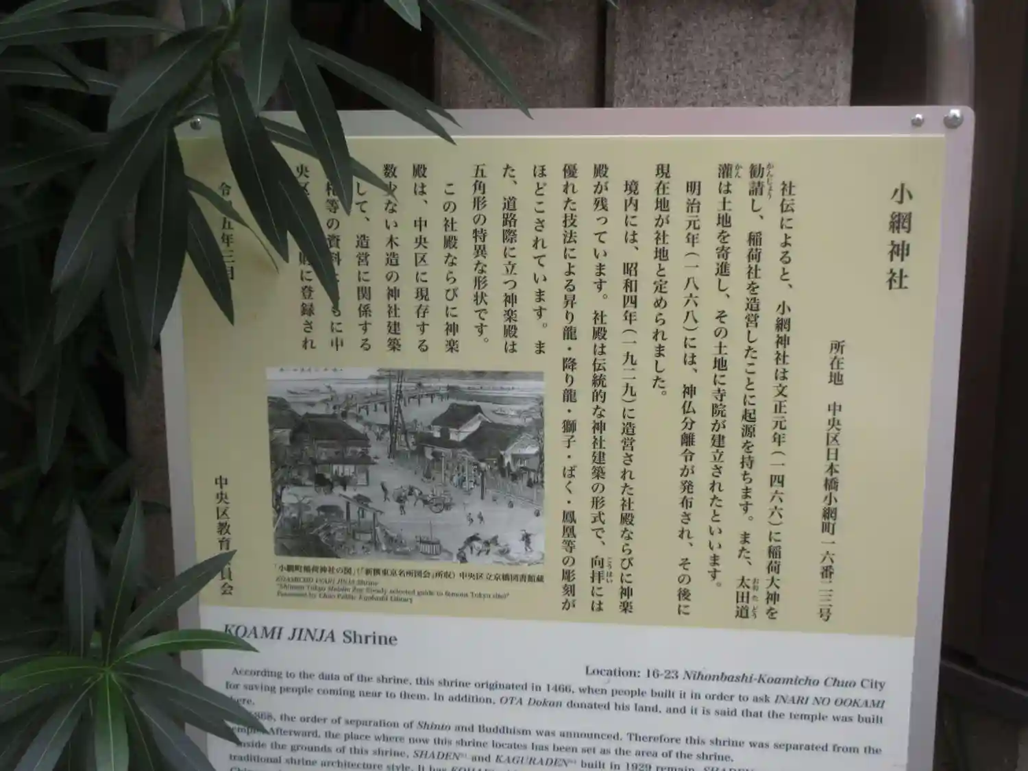 東京都中央区日本橋小網町に鎮座する神社で、創建年代等は不詳ながら、悪疫消滅鎮静を祈願するために、恵…