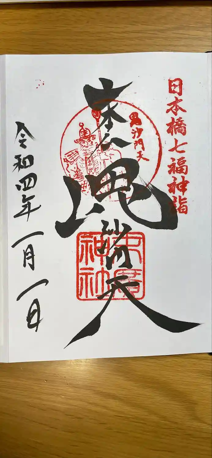 日本橋七福神巡りで唯一直接揮毫して下さいました。ありがたいです。神社を出たところに獅子舞の方がおり、頭を噛んで頂きました