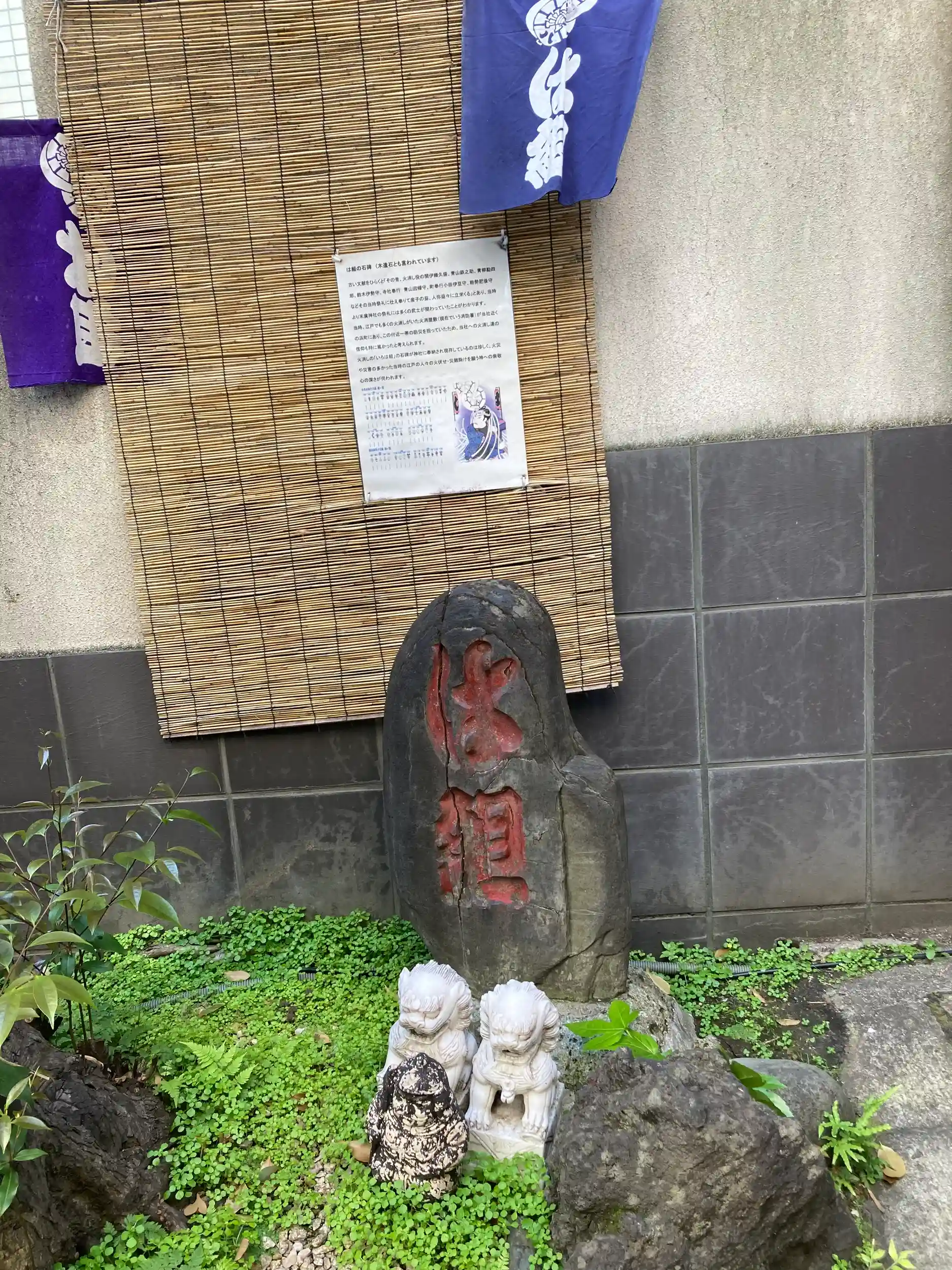 個人商店の並びにある小さな神社ですが参拝客三組。鳥居も小さめですが、抜けると手水舎、お稲荷さんの小さな祠があり正面に拝殿。