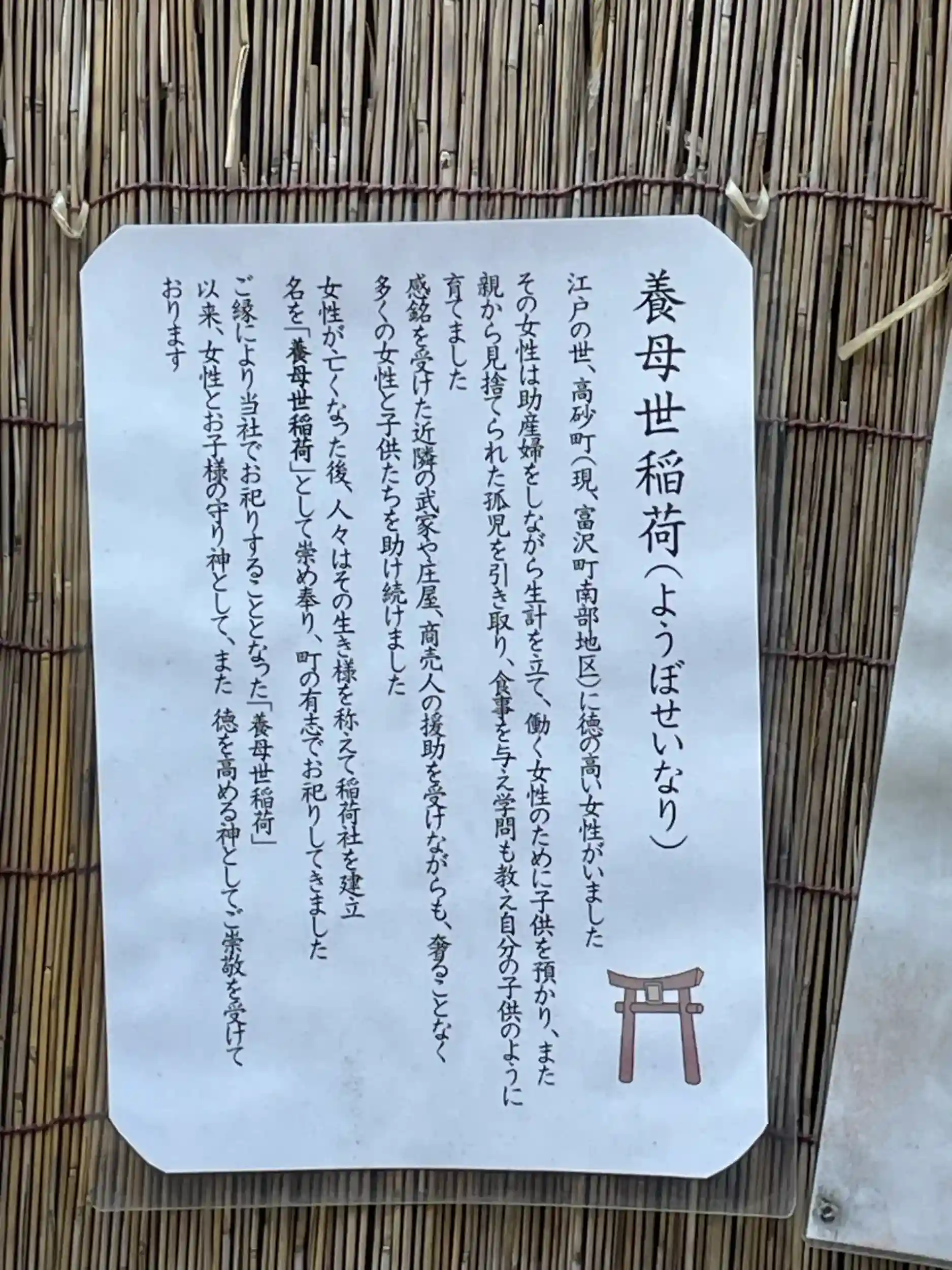 創祀は明らかではありませんが、古文書によると、慶長元年には「稲荷祠」として現在の境内地辺りに鎮座しておりました。