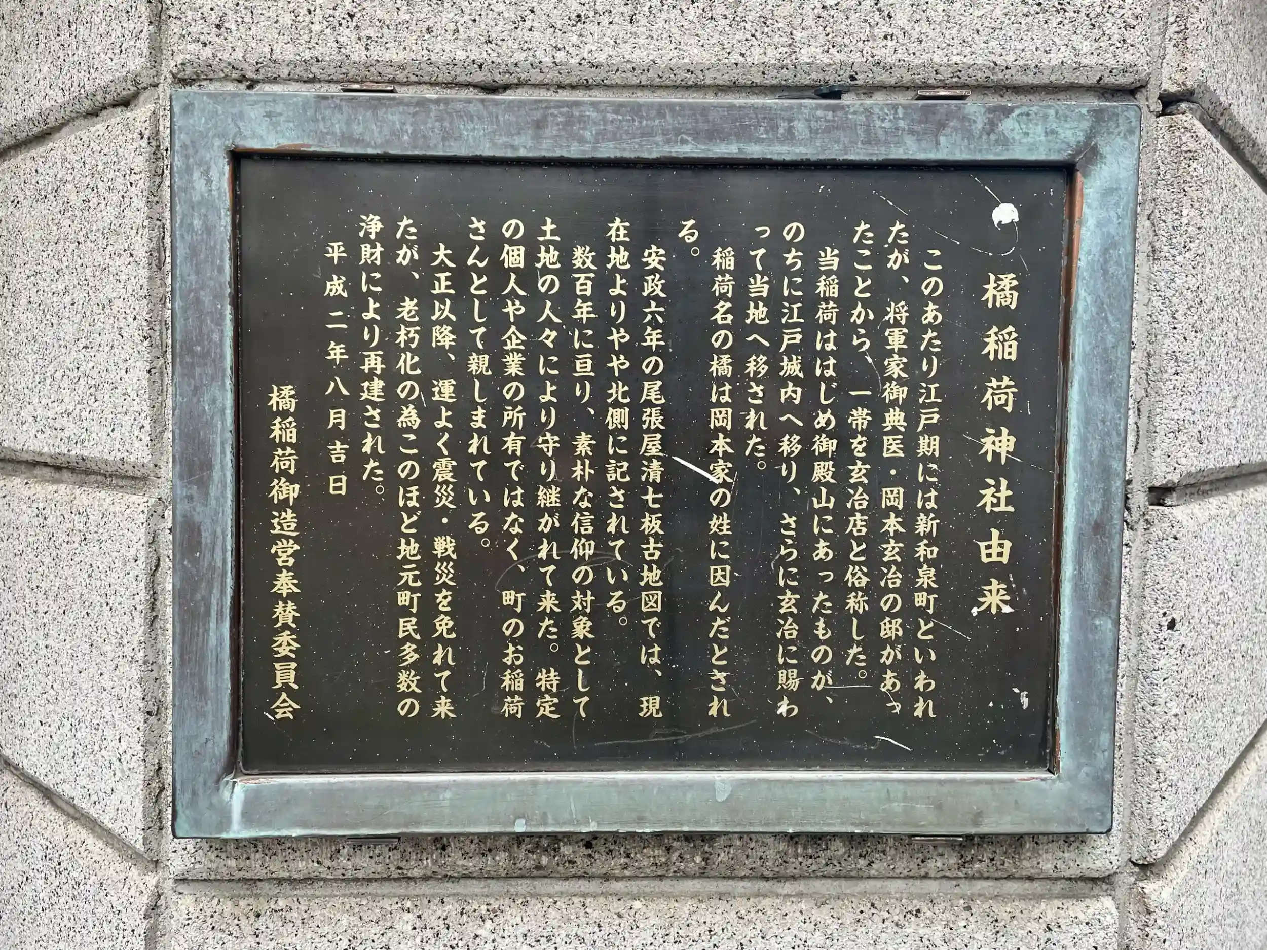 岡本玄冶の元姓が「橘」であったことから、「橘稲荷」と称されていた。