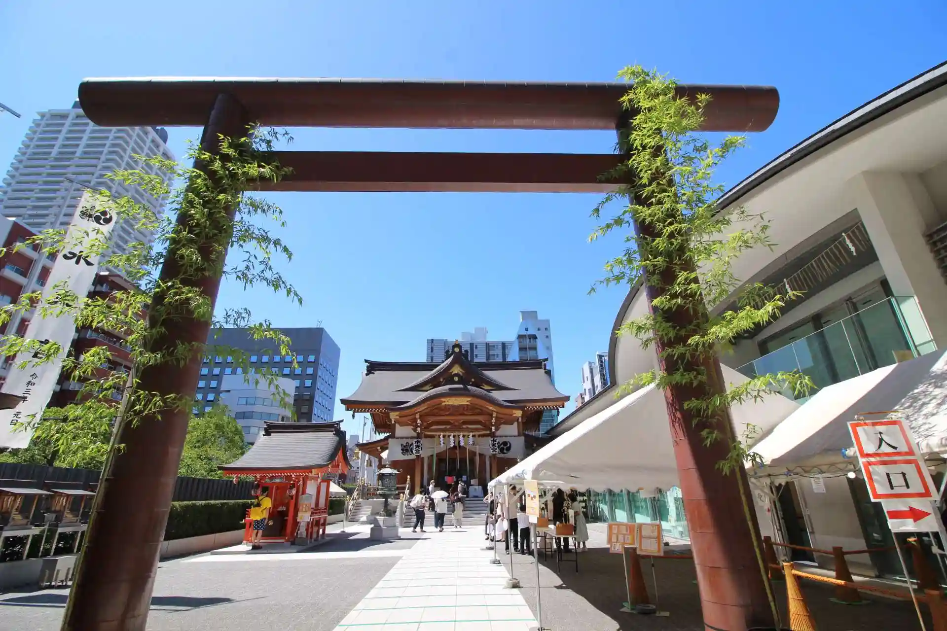 コンクリート造りの近代的な建物の上にある拝殿は暑い💦とにかく暑い💦