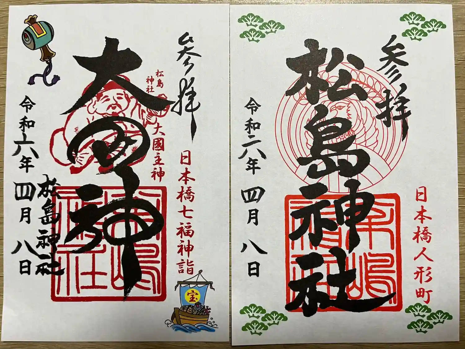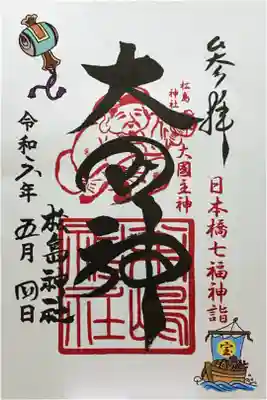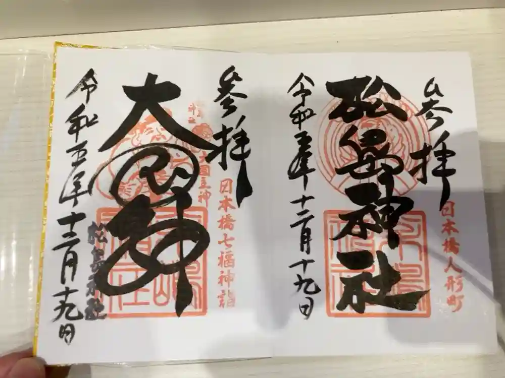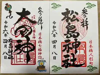 御朱印の記録の為に投稿。 日本橋七福神詣(大黒天)と、松島神社の通常御朱印。