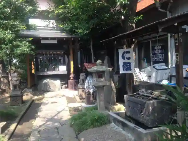 玉垣にはかつてのあった料亭の名が多くあり、水屋には、江戸火消しの「に組」奉納札がぶら下がり、華やかだった江戸の風情が偲ばれる。また、境内には慈愛地蔵尊もある。