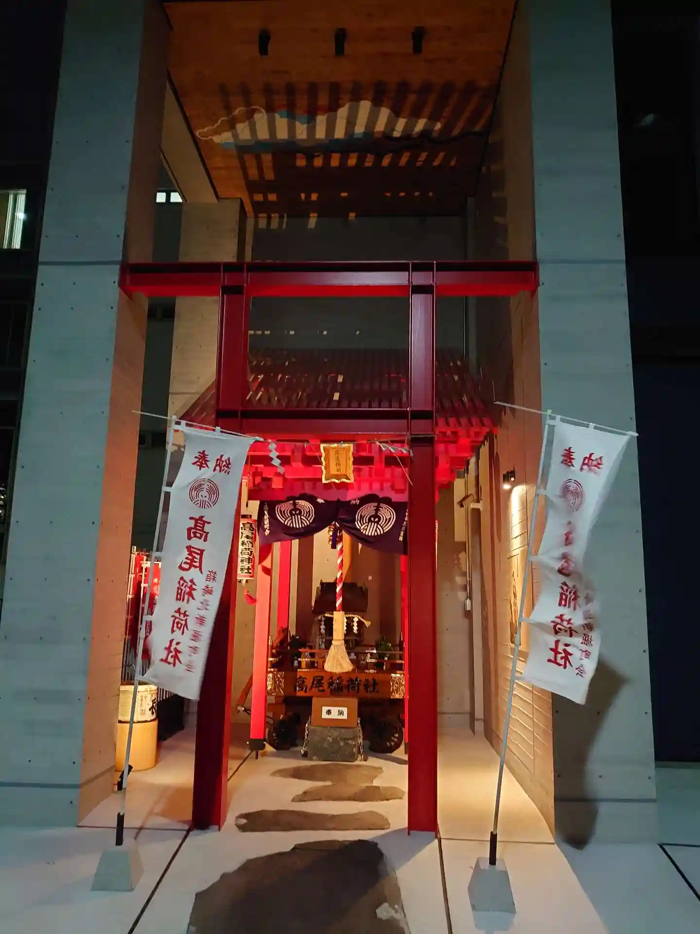 ビルに取り込まれた感じの神社はいくつか見てきたが、鳥居が鉄骨でかつ建物の一部になっているのは初めて見た。