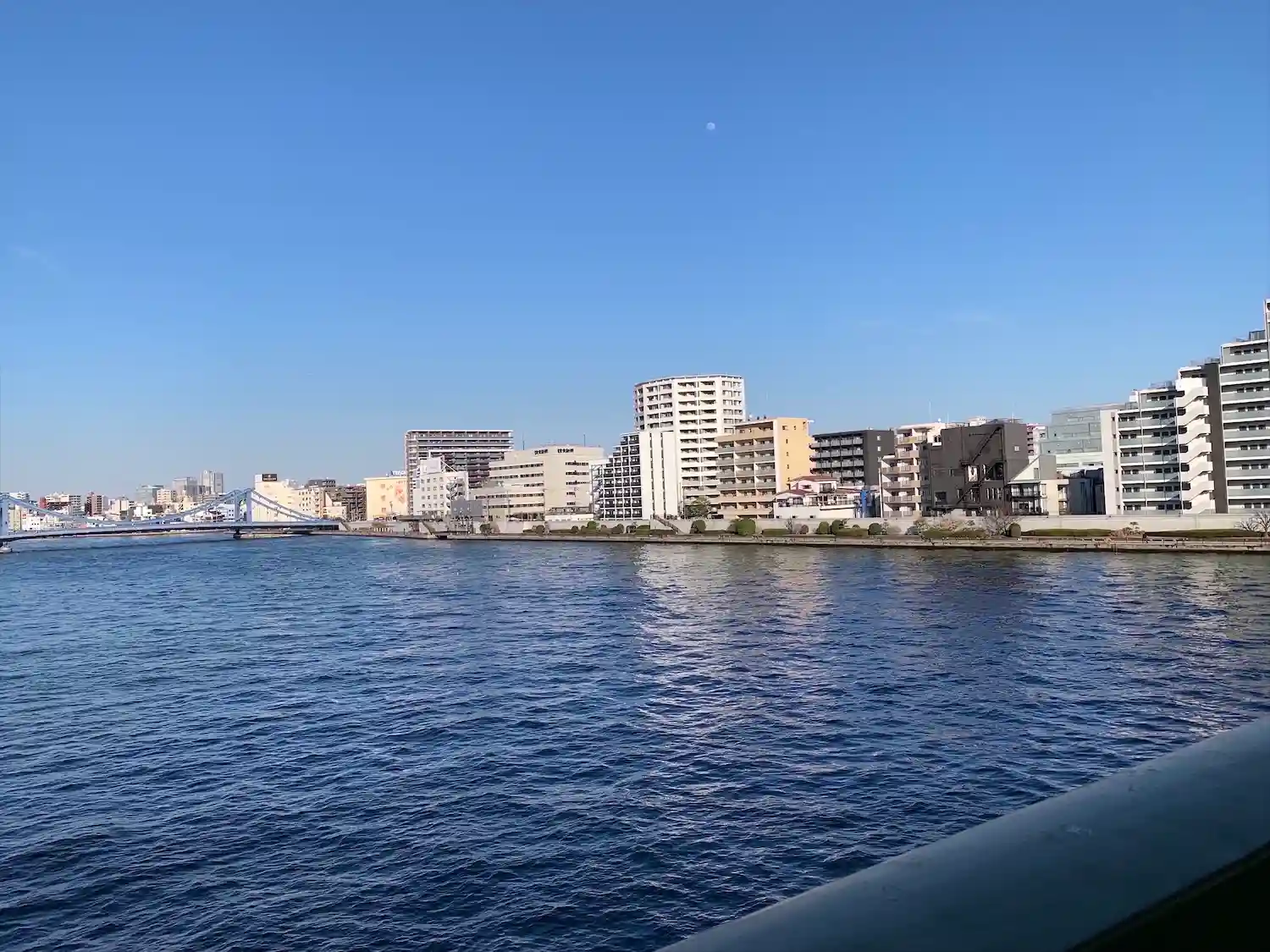 途中の橋から見えた隅田川です
