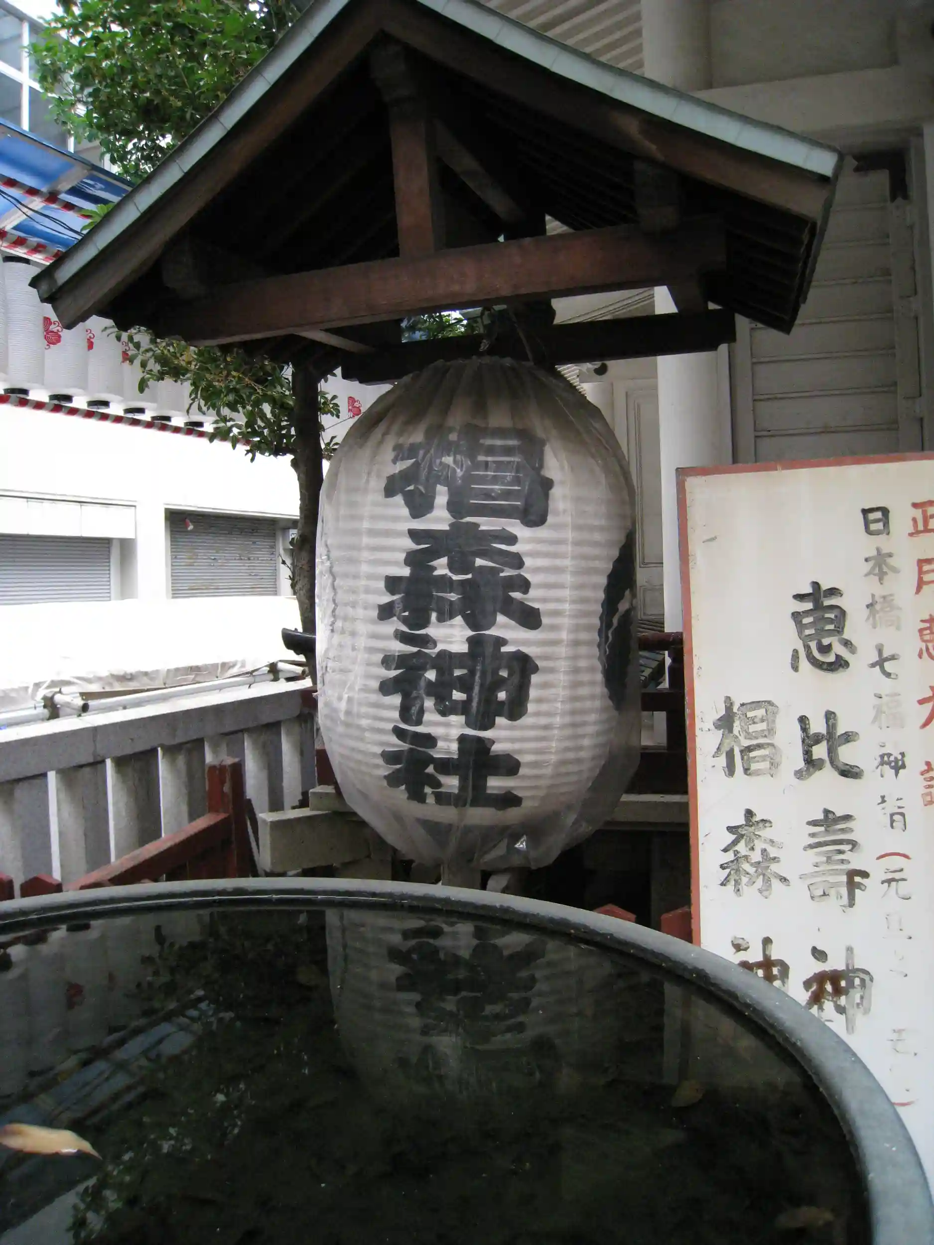 明治維新以後も、東京市中の古社として盛んに信仰されましたが、惜しくも関東大震災で全焼し、現在の社殿は昭和六年に耐震構造の鉄筋造りで再建されました。境内には富塚の碑が鳥居の脇に立ち、当社で行われた富興行をしのんで大正八年に建てられたもので(昭和二十八年再建)で、富札も残されており、社殿と共に中央区民文化財に登録されています。