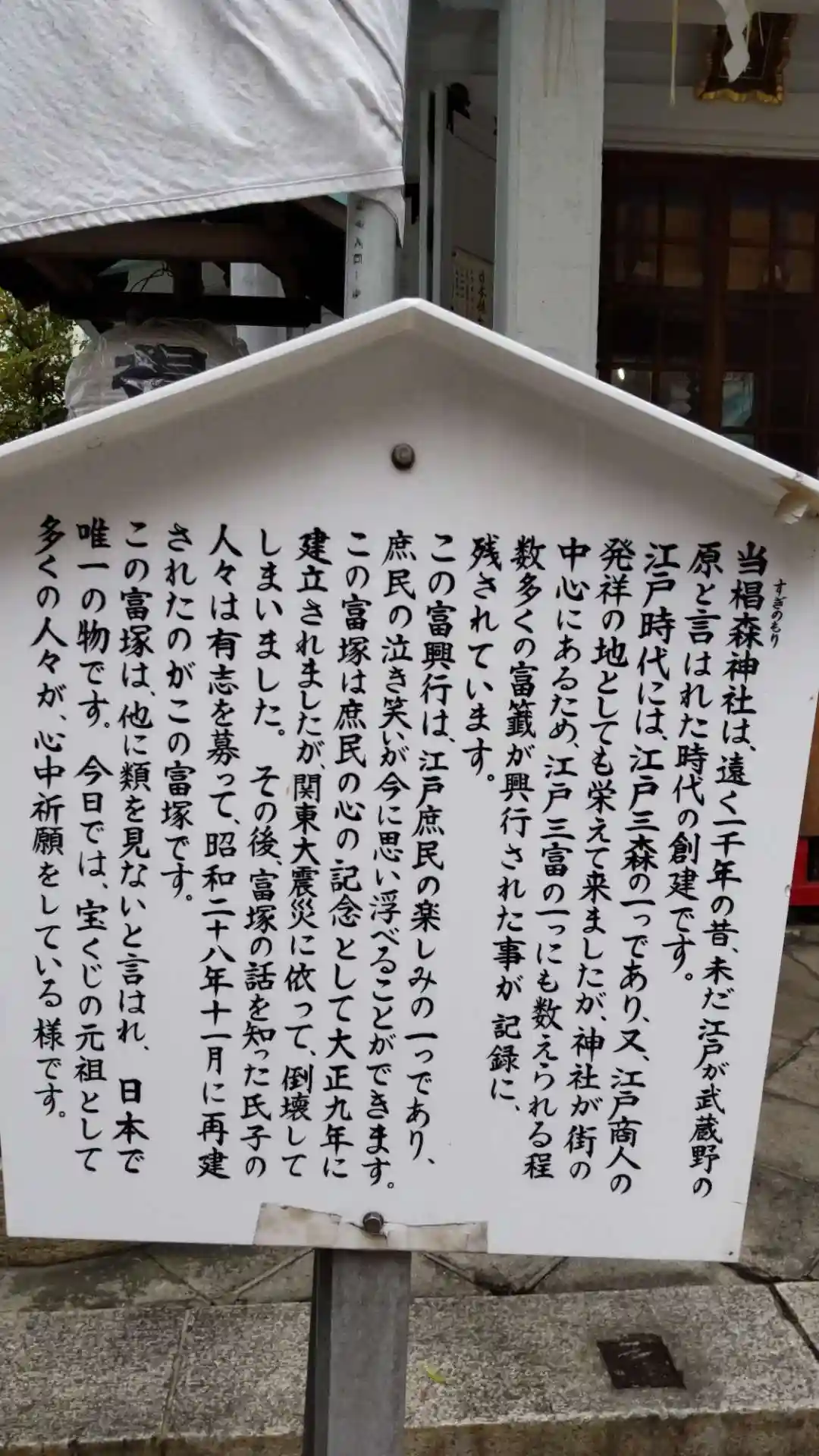 直書き。宝くじの元祖にしては少し地味な神社ですが(笑)