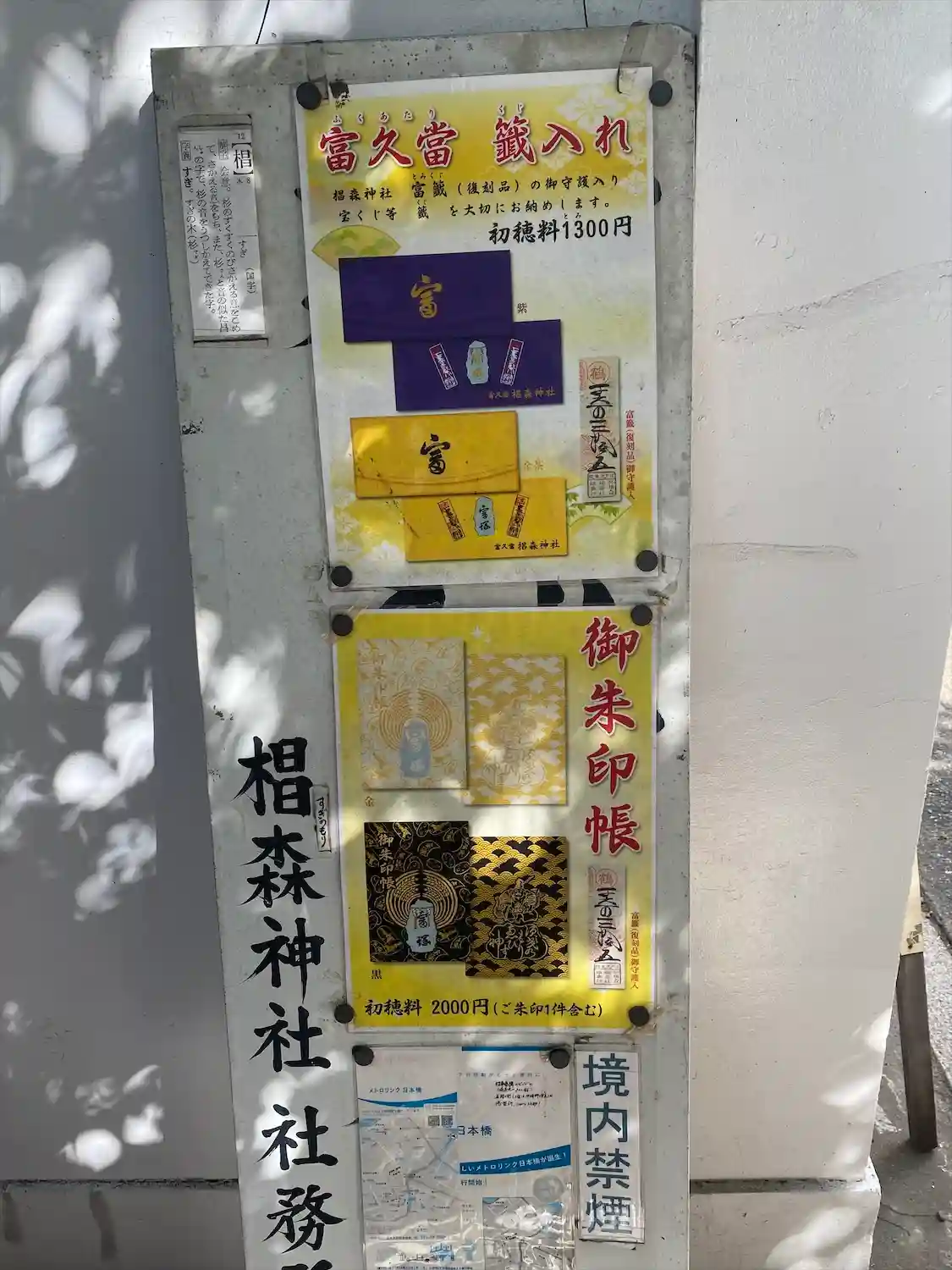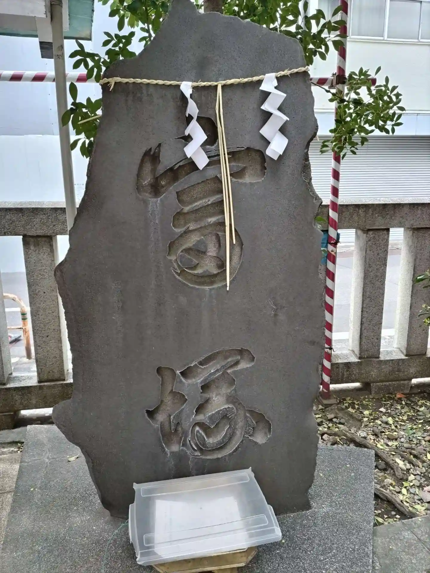 富塚には、宝くじ当選祈願に使う三宝が置いてありました。