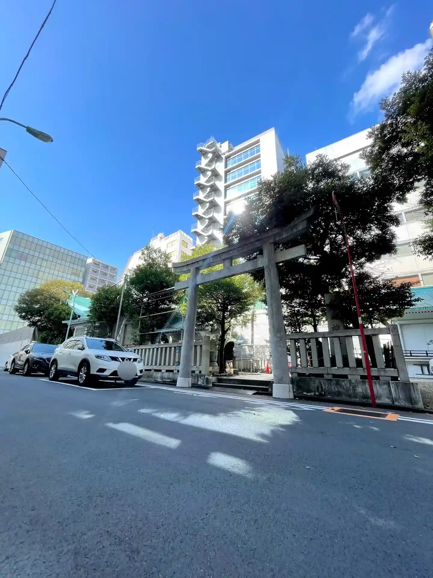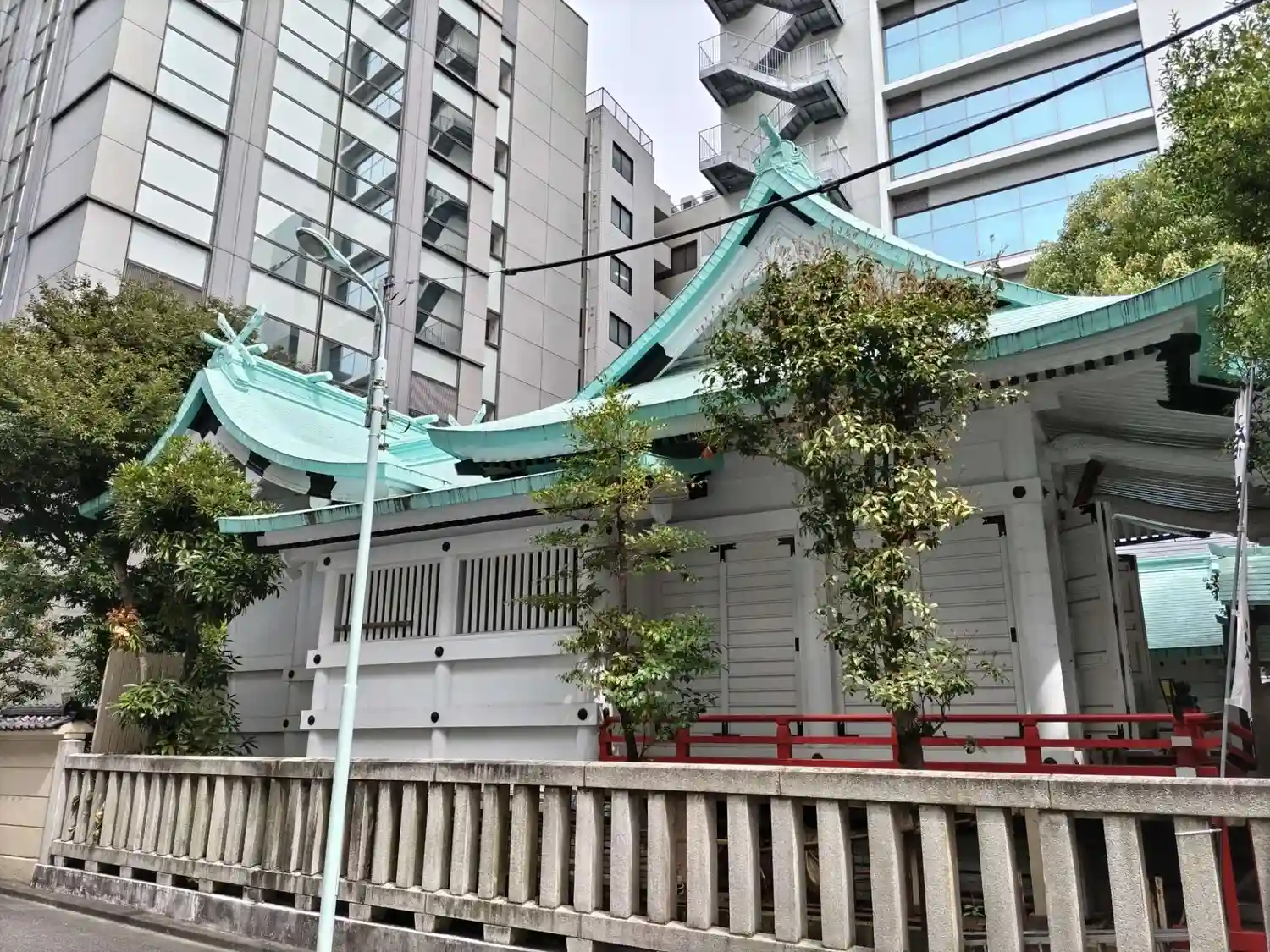 白×ミント色の爽やか配色が印象的な神社です。