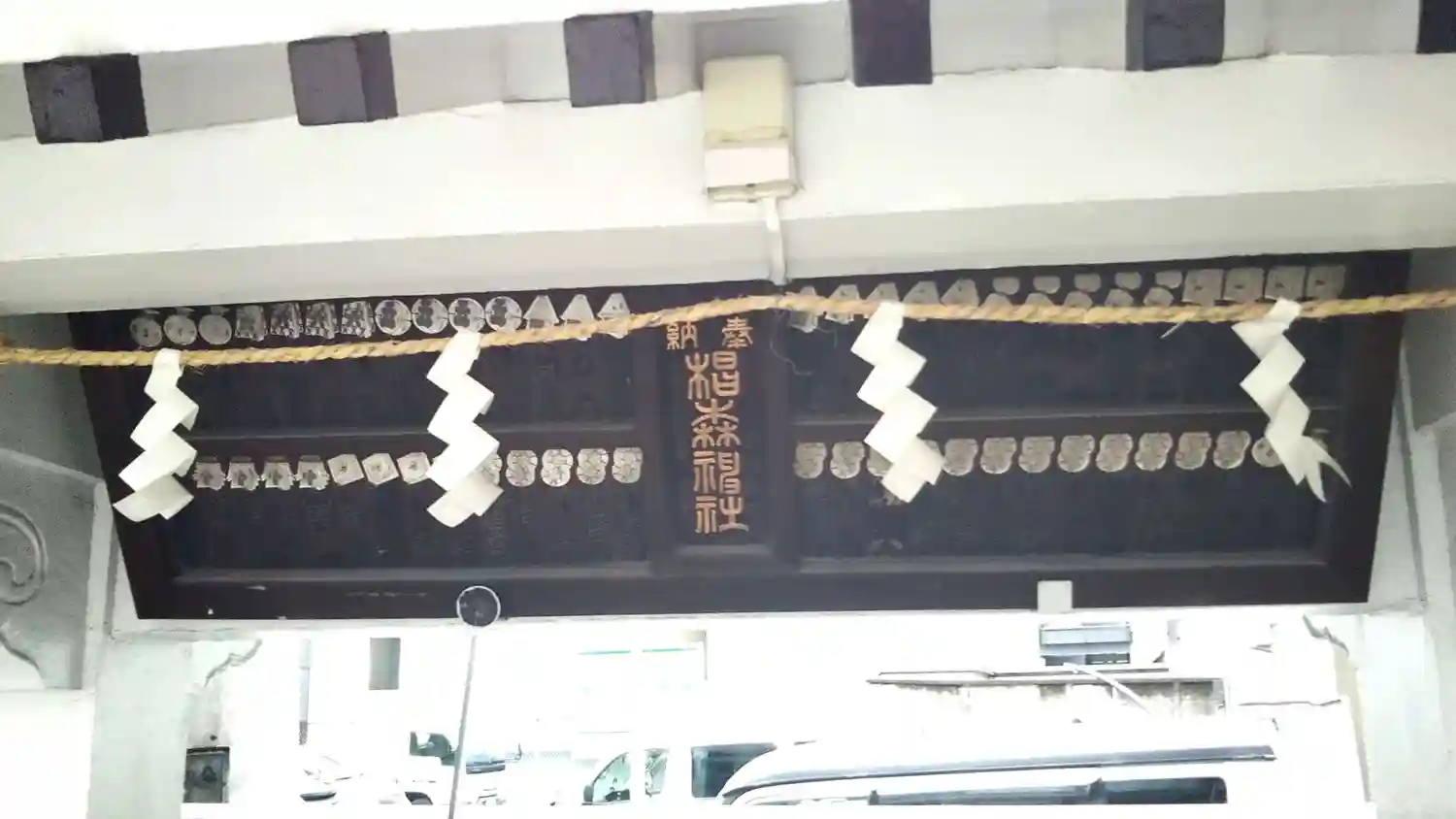 お手水の上に掛けられた木製の額