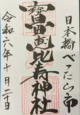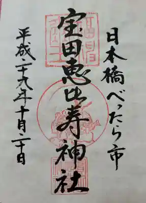 寳田恵比寿神社の限定御朱印の情報を書き込む