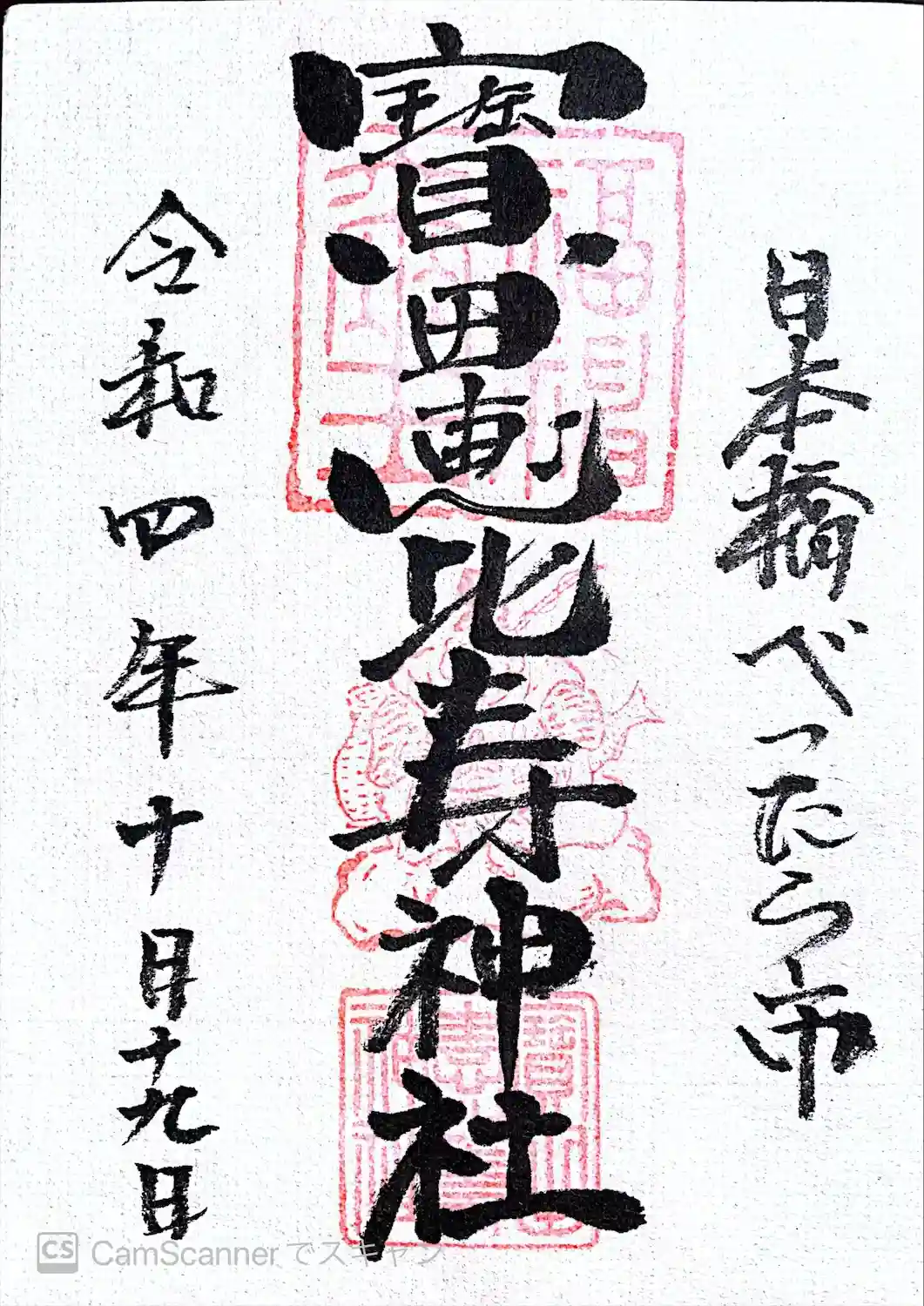 【宝田恵比寿神社御朱印】