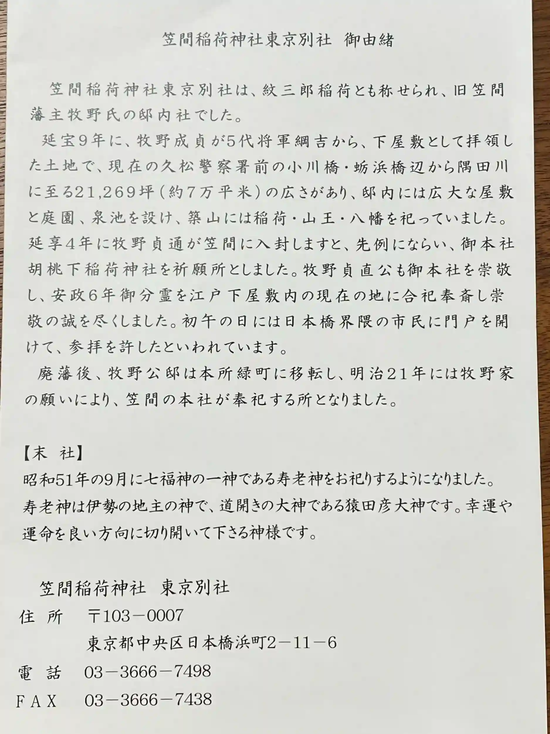 かさまいなりじんじゃ とうきょうべっしゃ