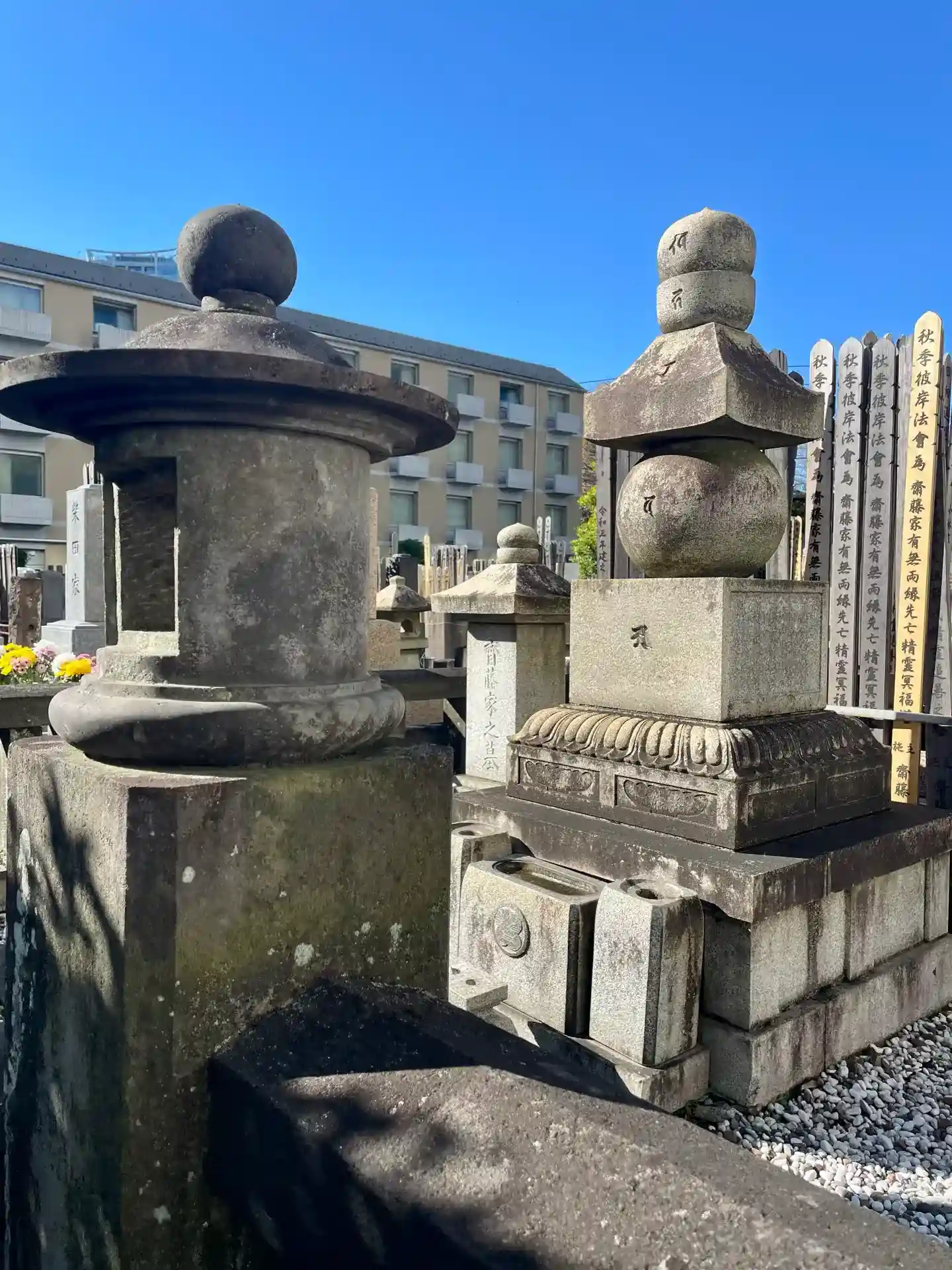 本堂裏手の墓地の奥、山手線の築堤沿いには約200体の石仏群があり、そこには一面観音、千手観音、馬頭観音、地蔵菩薩などが含まれている。