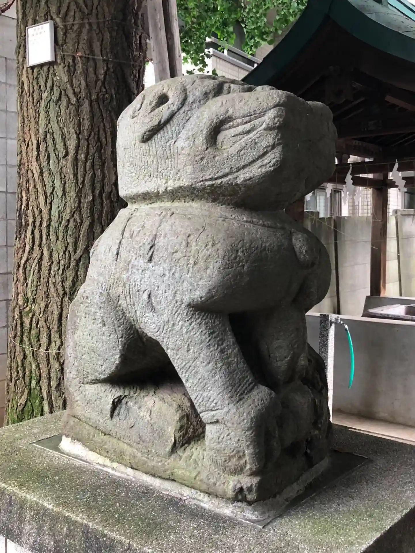 東郷神社から徒歩15分位、渋谷駅からは10分位、こじんまりとした神社です。手水舎のそばにカバのような独特な容姿の狛犬さんがいます。かなり古そうですが年代不明。拝殿前の狛犬さんもなかなか魅力的です。こちらは大正14年9月奉納。