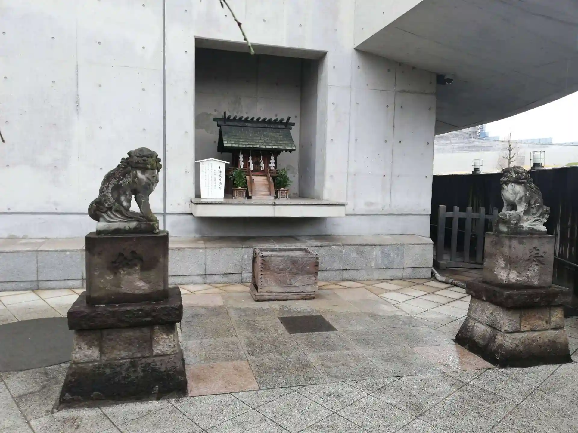 ビルの屋上のお社は直線と曲線のリズム感、ガラス・金属・木の質感を大切に造られていました。