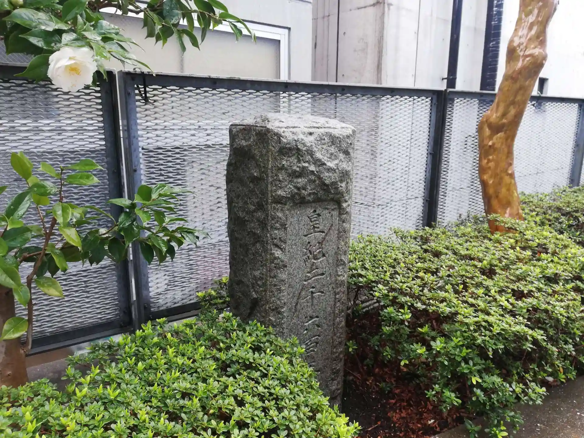 屋上緑化され、古い石碑などがいくつも置かれています。