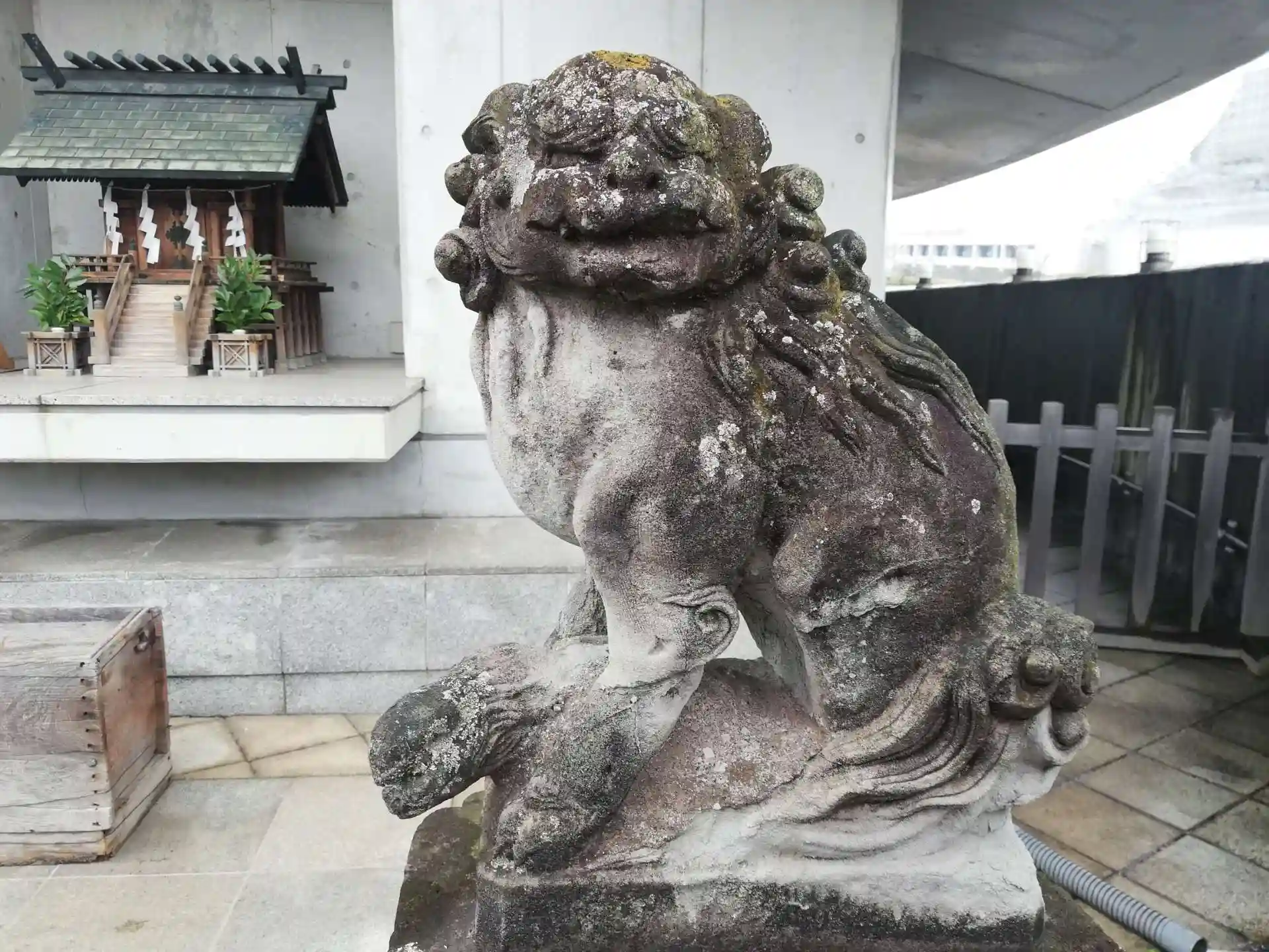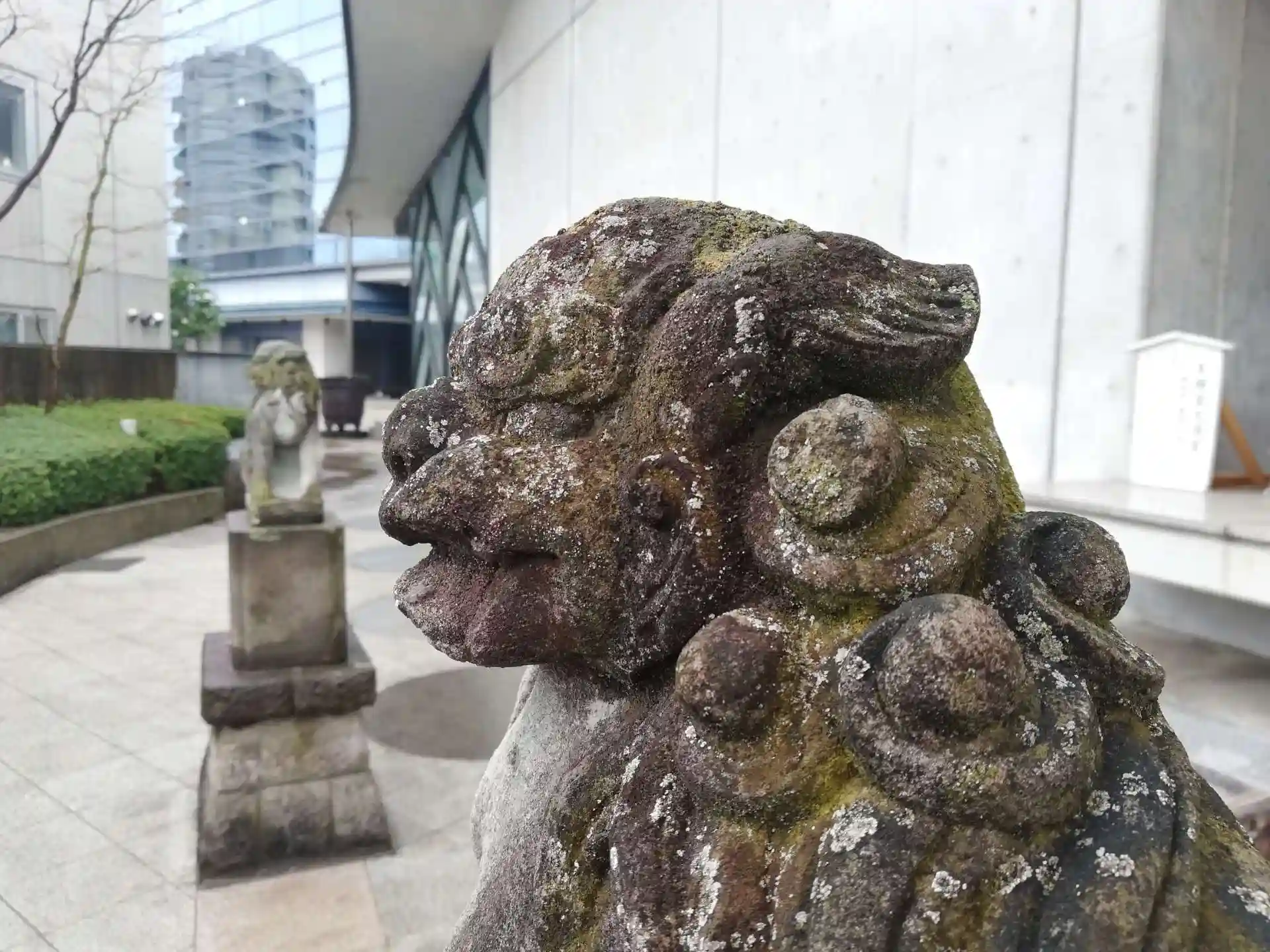 やんちゃな子供に困っているお顔の狛犬さん。