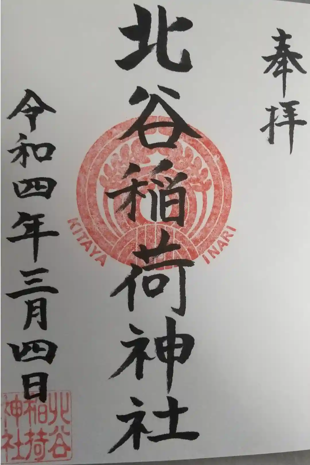 北谷稲荷神社の御朱印 写真一覧